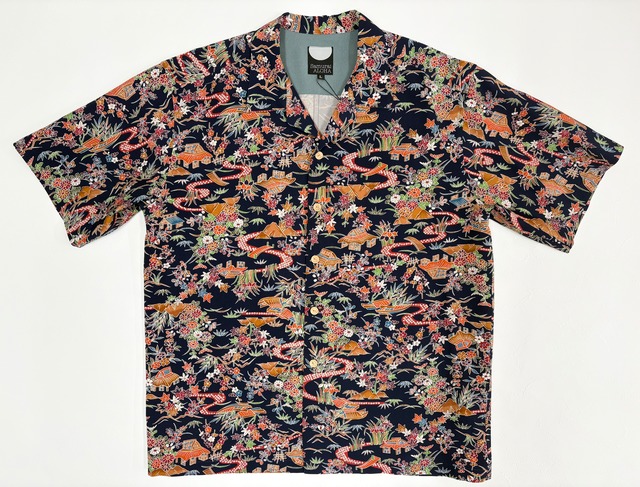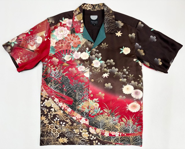 ——————————————————————— サムライアロハシャツ サイズ:M 素材: 絹(シルク) ボタン:竹ボタン No.32621120 ——————————————————————— ヴィンテージの着物生地を使ってお仕立てした一点もののアロハシャツ。 春夏の着こなしのアクセントになる一枚です。 竹ボタンがアロハシャツらしい暖かい印象を与えつつ、綺麗目なスタイルに仕上げ、 脇と背中心を折り伏せ縫いでお仕立てした、本格高級アロハシャツです。 前のボタンを留めて一枚で着ていただくことも、 ティーシャツ等の上に一枚軽く羽織っていただくこともできます。 是非ご自身のコーディネートにあわせた自由なスタイリングを楽しんでください。 すべてのアロハシャツは東北地方の針子の皆様及び縫製工場にて、 一つ一つ丁寧に、裁断、洗い、縫製を経て、皆様のお手元に届きます。 ユニセックスで男女どちらでもお召しになっていただけます。 ※こちらはヴィンテージ着物を使用したリメイク商品です。 着物をほどいたのちに全て洗いをかけておりますが、経年のために多少生地の色あせ・シミ・擦り切れ等がある場合がございます。 また、サイズ表はありますが一枚一枚素材が異なるため、出来上がった際のサイズが多少異なることがあります。 あらかじめご了承ください。 【お手入れ】 ドライクリーニングをお勧めしております。 ※着物の生地は非常に繊細な場合がございますので お取り扱いにはじゅうぶんお気をつけください。 アイロンの際には必ず低温で裏から当て布をして優しくおかけてください。 【返品・交換について】 お送りする前に一着一着丁寧に検品後 発送しております。 基本的に商品到着後の返品・交換は行っておりません。 ::::::::::::::::::::::::::::: ー SAMURAI ALOHAとはー 私たちSAMURAI ALOHAは着られなくなった着物を選別し、宮城県のお母さん達の手で一着ずつ丁寧にほぐして洗い、裁断し、福島県、岩手県の縫製工場の皆さんの手でアロハシャツに仕立て直しています。 アロハシャツの原点は日本の着物です。 十九世紀末から二十世紀初頭にかけてハワイに移民として渡った日本人が、自分たちの着物をほぐして、開襟シャツに仕立て直したのがアロハシャツの始まりと言われています。 日本の着物が原点のアロハシャツを東北でもう一度、復活させたのが私達の「サムライアロハ」です。私達のアロハシャツは全て一点物です。 ぜひ、あなたに合った世界で一つだけの「サムライアロハ」を見つけてください。