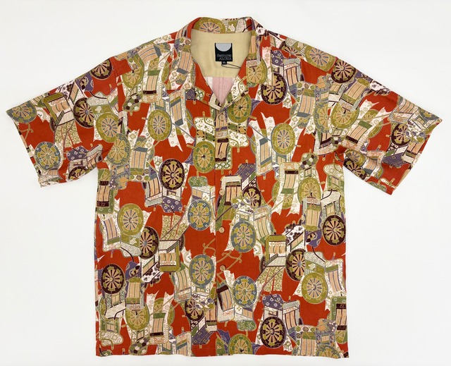 ——————————————————————— サムライアロハシャツ サイズ:XL 素材: 絹(シルク) ボタン:竹ボタン No.32541108 ——————————————————————— ヴィンテージの着物生地を使ってお仕立てした一点もののアロハシャツ。 春夏の着こなしのアクセントになる一枚です。 竹ボタンがアロハシャツらしい暖かい印象を与えつつ、綺麗目なスタイルに仕上げ、 脇と背中心を折り伏せ縫いでお仕立てした、本格高級アロハシャツです。 前のボタンを留めて一枚で着ていただくことも、 ティーシャツ等の上に一枚軽く羽織っていただくこともできます。 是非ご自身のコーディネートにあわせた自由なスタイリングを楽しんでください。 すべてのアロハシャツは東北地方の針子の皆様及び縫製工場にて、 一つ一つ丁寧に、裁断、洗い、縫製を経て、皆様のお手元に届きます。 ユニセックスで男女どちらでもお召しになっていただけます。 ※こちらはヴィンテージ着物を使用したリメイク商品です。 着物をほどいたのちに全て洗いをかけておりますが、経年のために多少生地の色あせ・シミ・擦り切れ等がある場合がございます。 また、サイズ表はありますが一枚一枚素材が異なるため、出来上がった際のサイズが多少異なることがあります。 あらかじめご了承ください。 【お手入れ】 ドライクリーニングをお勧めしております。 ※着物の生地は非常に繊細な場合がございますので お取り扱いにはじゅうぶんお気をつけください。 アイロンの際には必ず低温で裏から当て布をして優しくおかけてください。 【返品・交換について】 お送りする前に一着一着丁寧に検品後 発送しております。 基本的に商品到着後の返品・交換は行っておりません。 ::::::::::::::::::::::::::::: ー SAMURAI ALOHAとはー 私たちSAMURAI ALOHAは着られなくなった着物を選別し、宮城県のお母さん達の手で一着ずつ丁寧にほぐして洗い、裁断し、福島県、岩手県の縫製工場の皆さんの手でアロハシャツに仕立て直しています。 アロハシャツの原点は日本の着物です。 十九世紀末から二十世紀初頭にかけてハワイに移民として渡った日本人が、自分たちの着物をほぐして、開襟シャツに仕立て直したのがアロハシャツの始まりと言われています。 日本の着物が原点のアロハシャツを東北でもう一度、復活させたのが私達の「サムライアロハ」です。私達のアロハシャツは全て一点物です。 ぜひ、あなたに合った世界で一つだけの「サムライアロハ」を見つけてください。