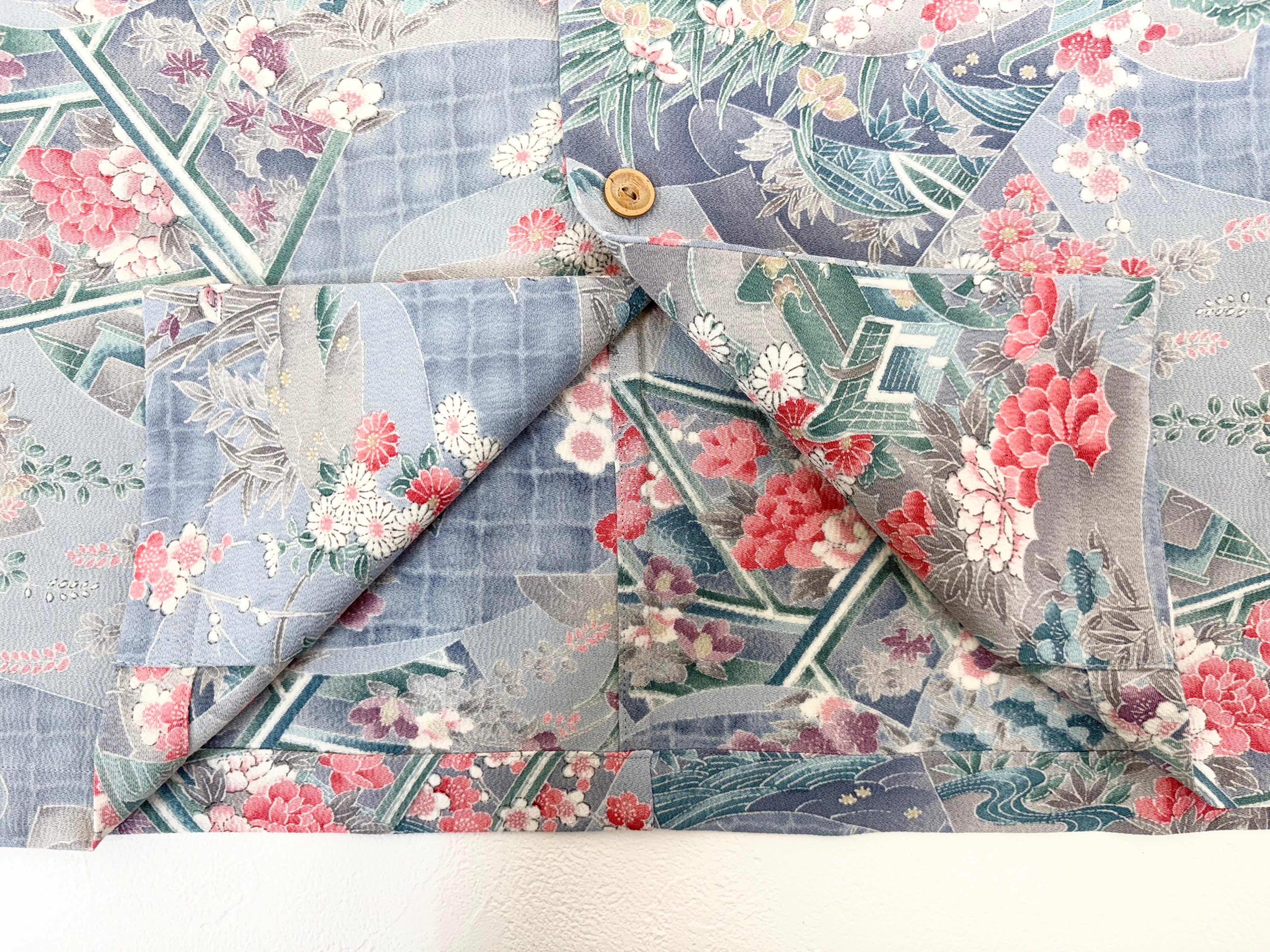 ヴィンテージの着物生地を使ってお仕立てした一点もののアロハシャツ。