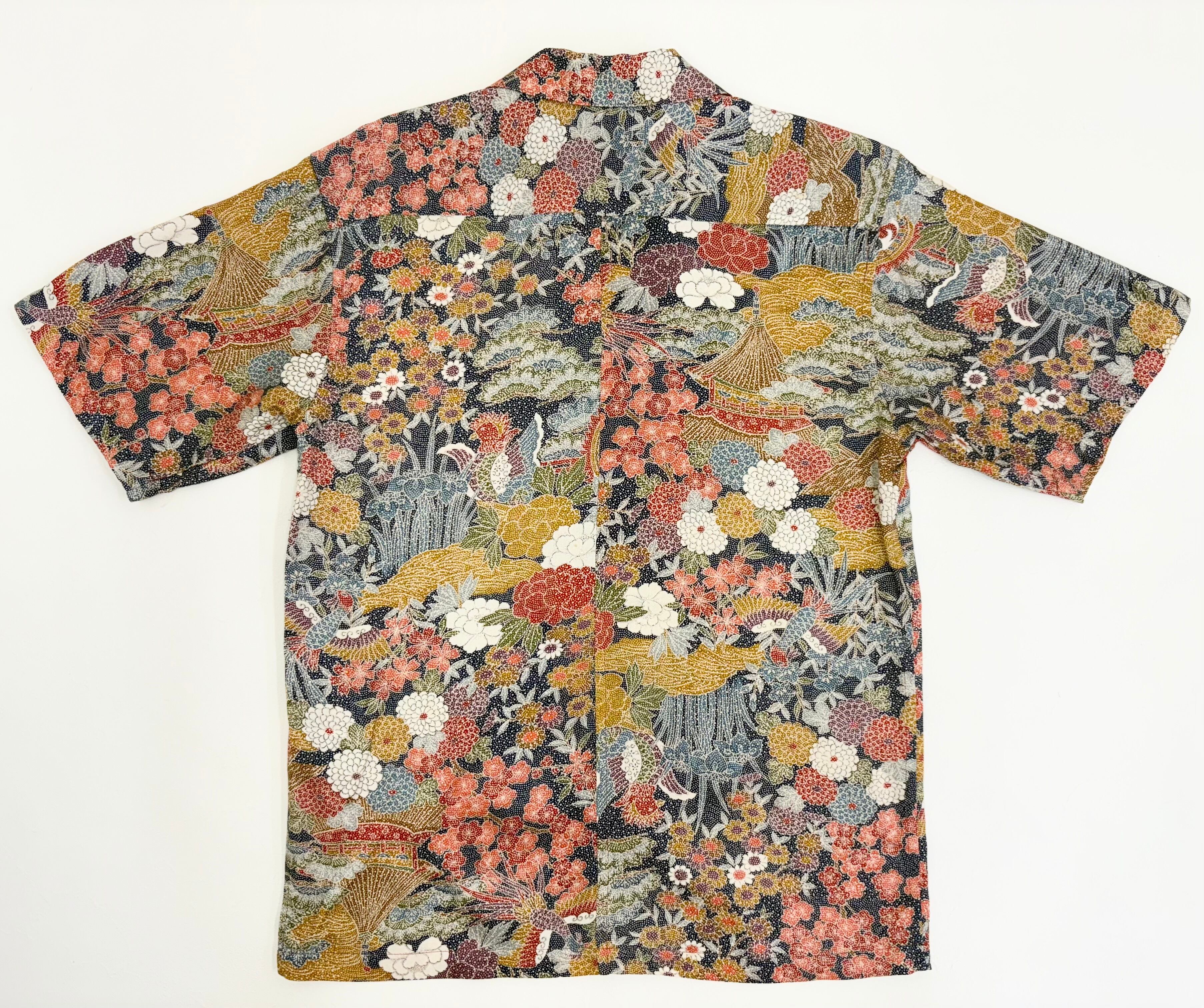 ヴィンテージの着物生地を使ってお仕立てした一点もののアロハシャツ。