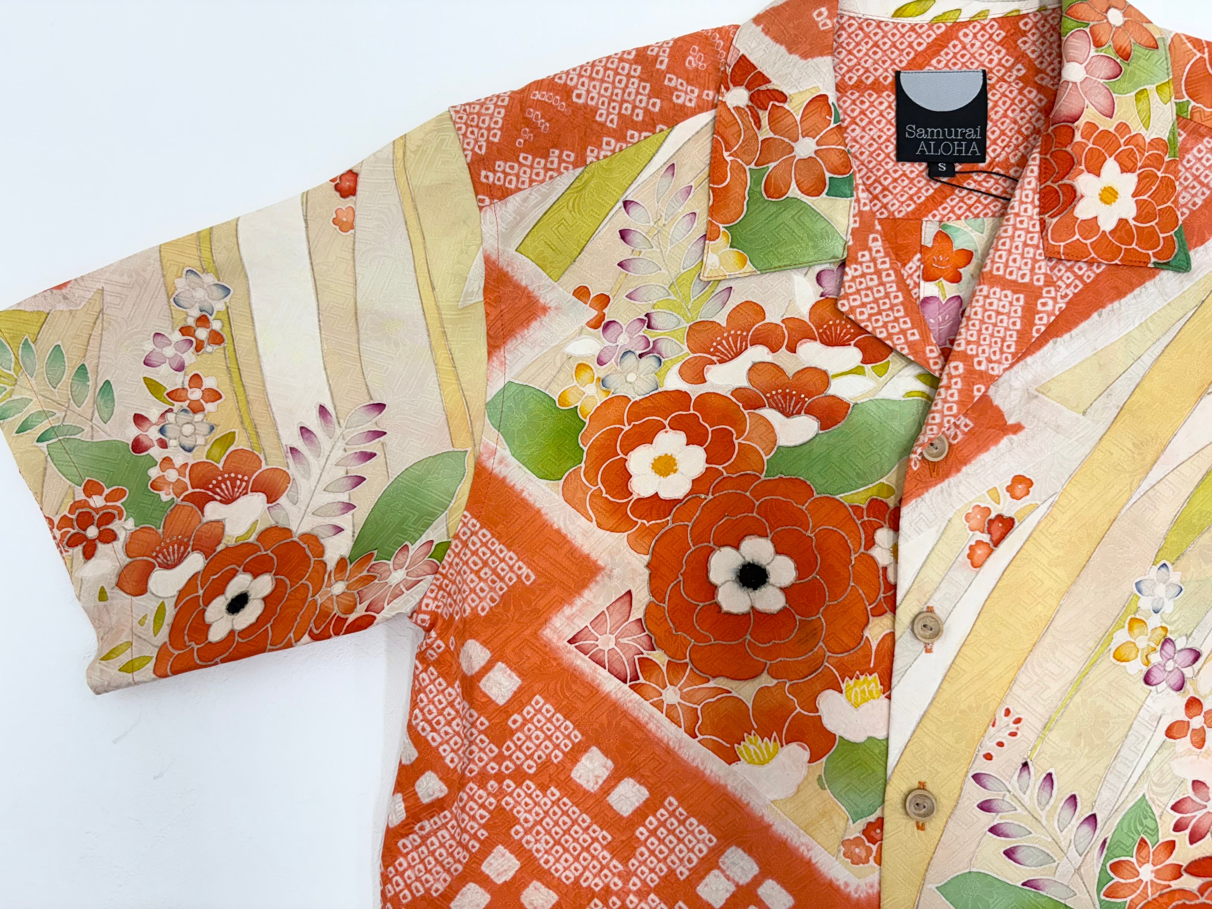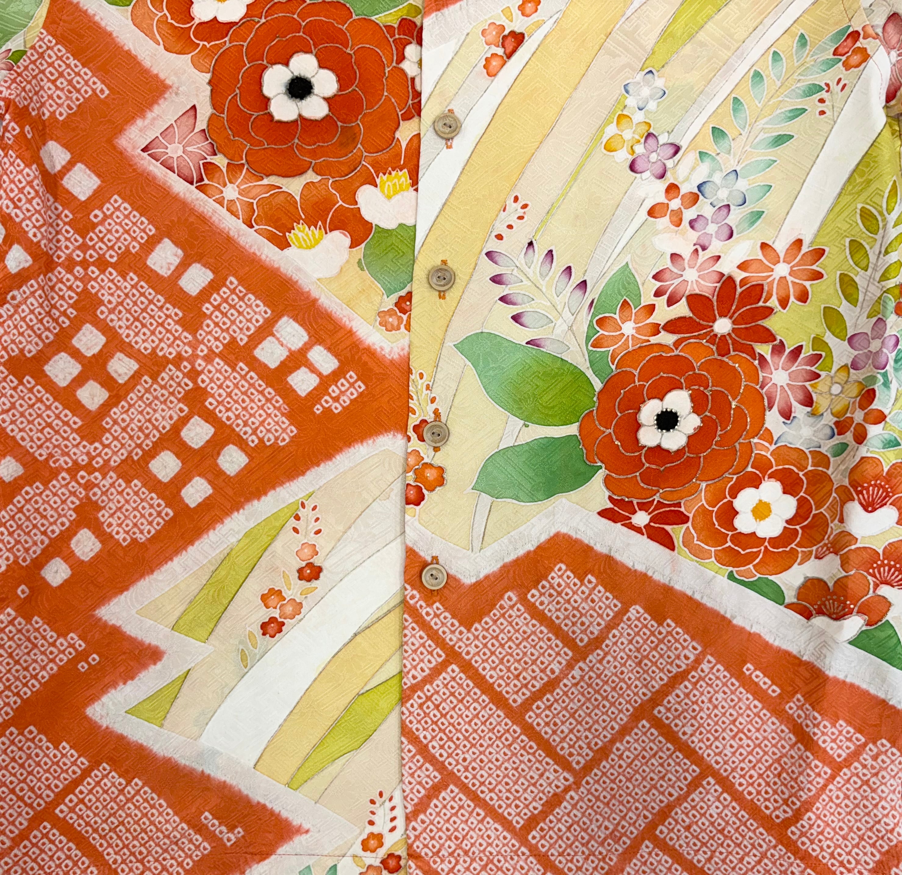 ヴィンテージの着物生地を使ってお仕立てした一点もののアロハシャツ。