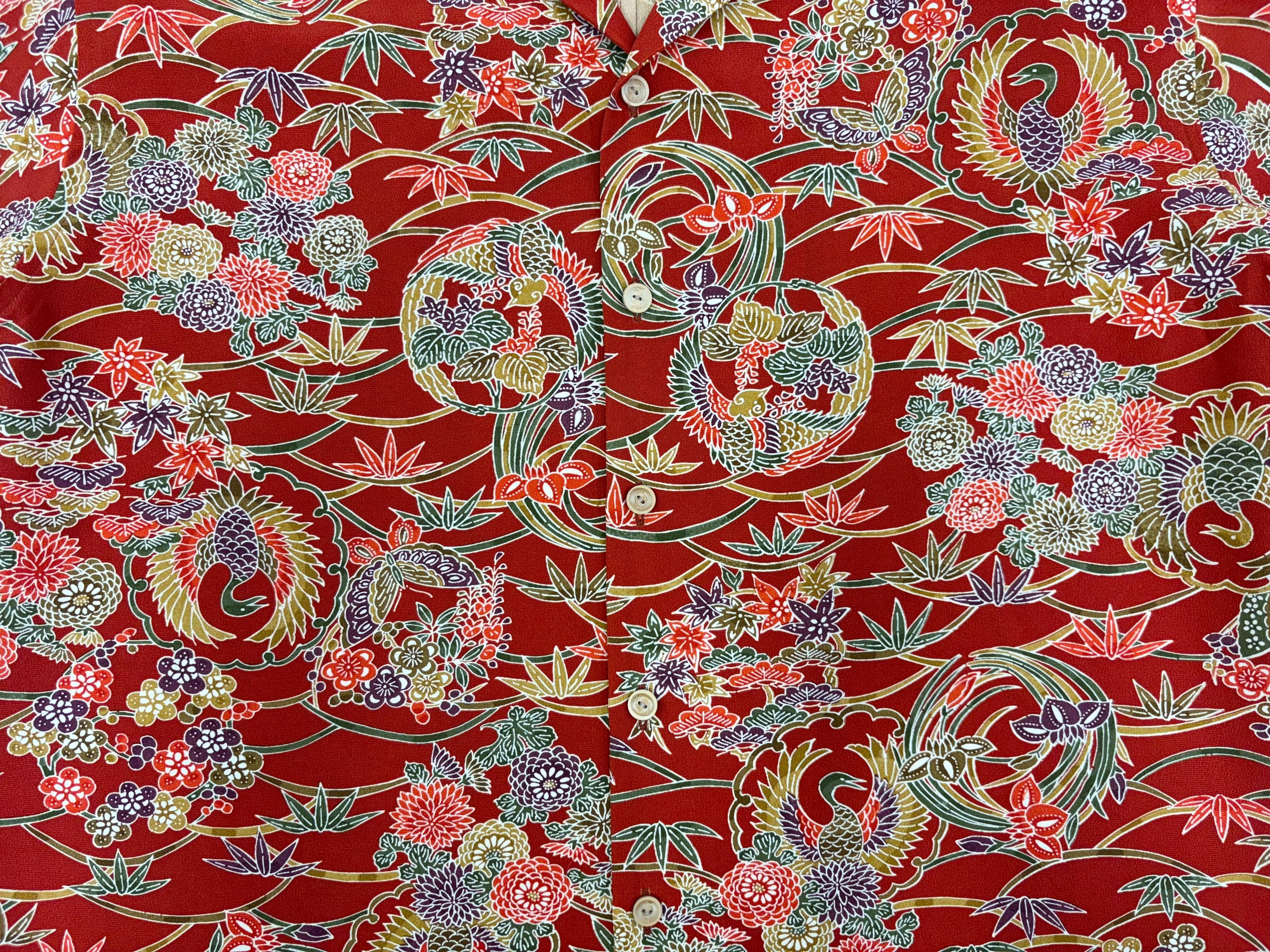 ヴィンテージの着物生地を使ってお仕立てした一点もののアロハシャツ。