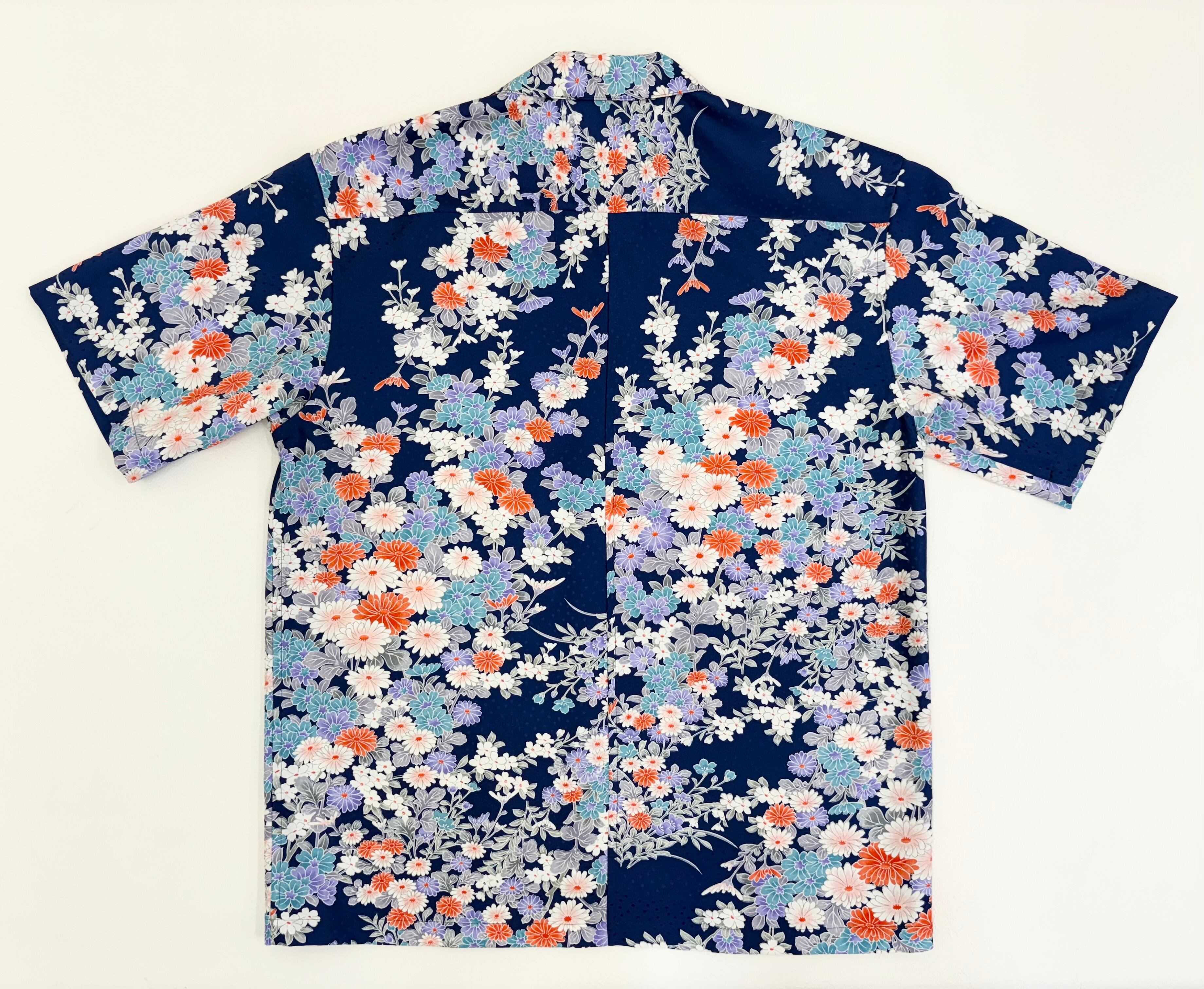 ヴィンテージの着物生地を使ってお仕立てした一点もののアロハシャツ。