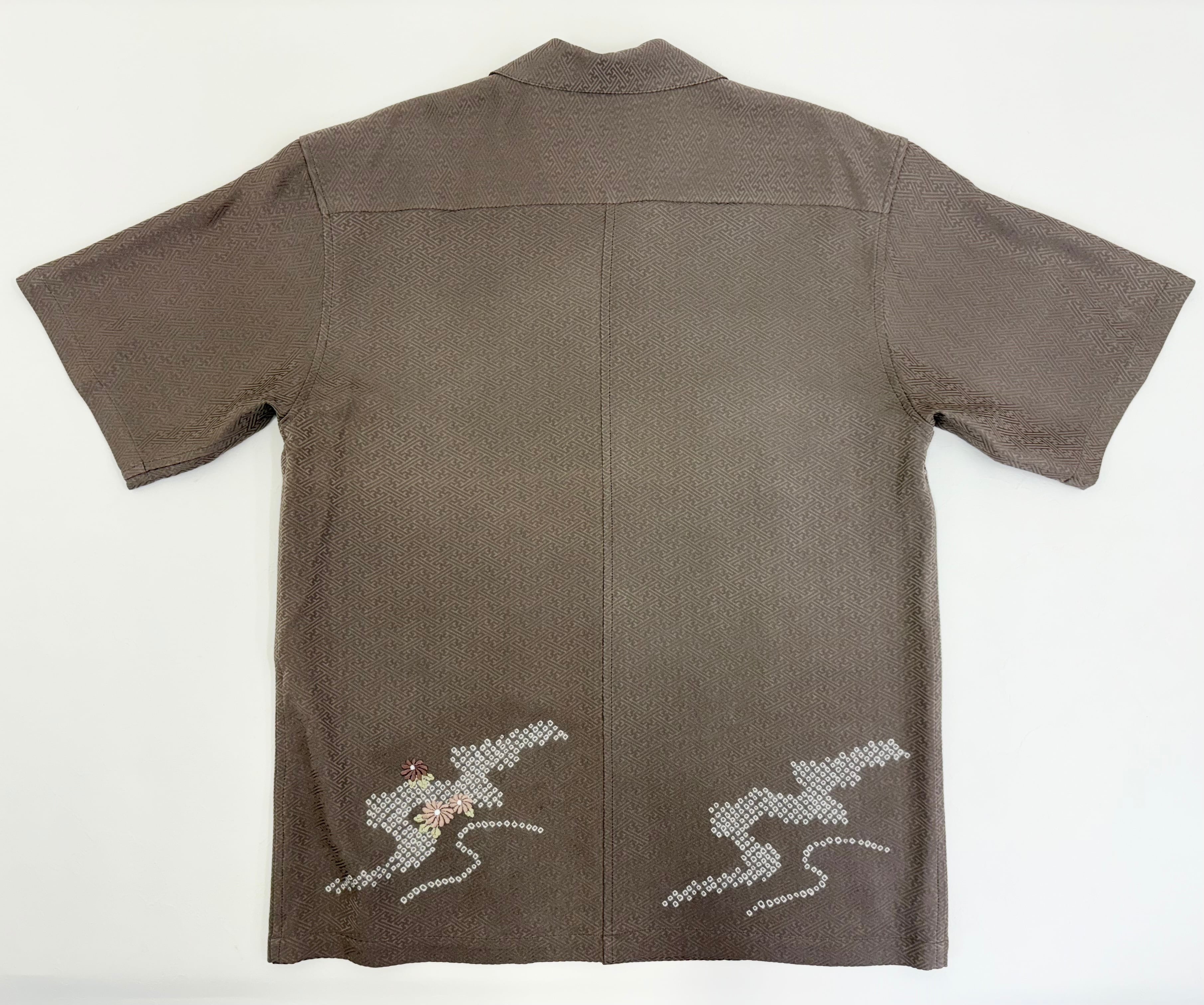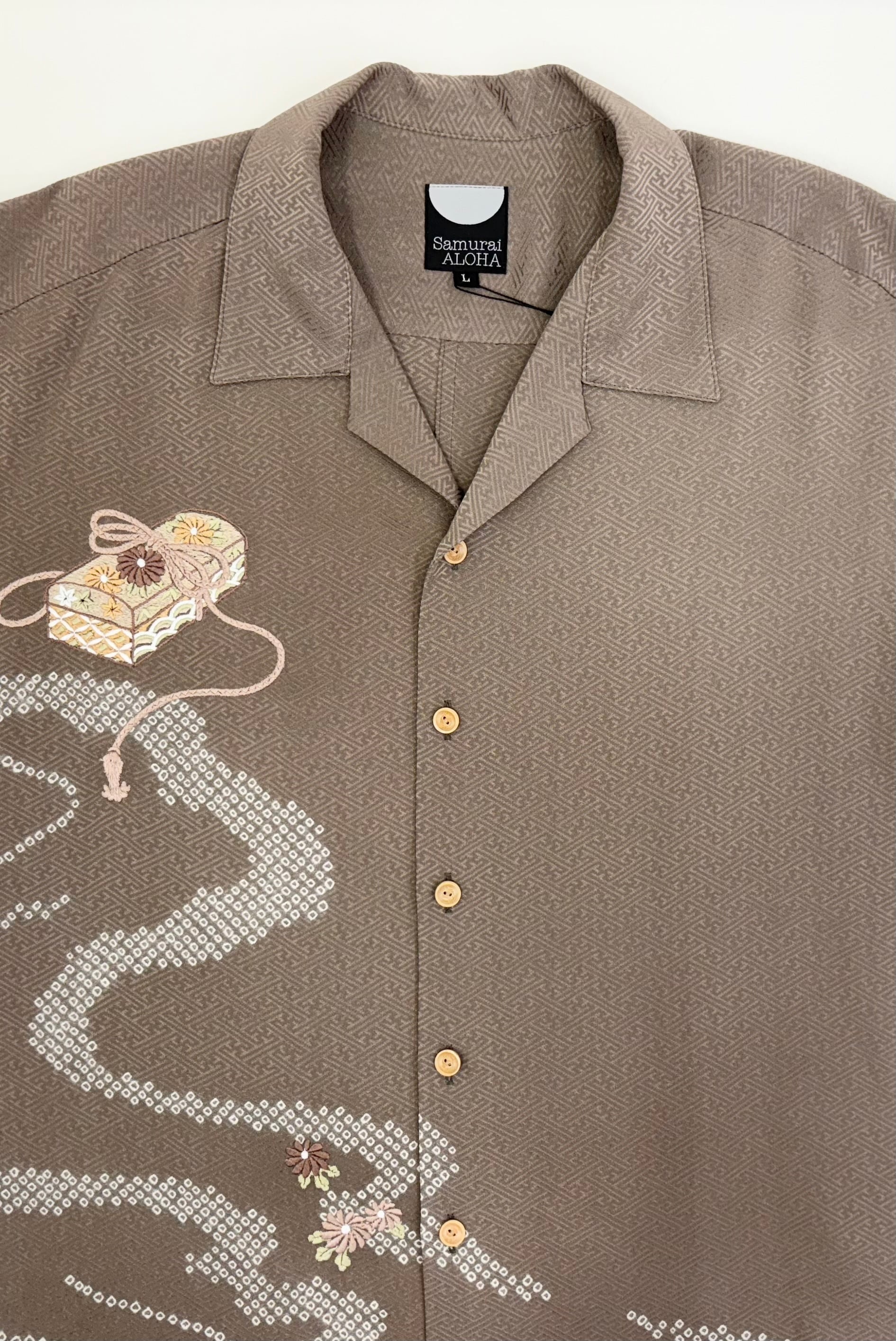 ヴィンテージの着物生地を使ってお仕立てした一点もののアロハシャツ。