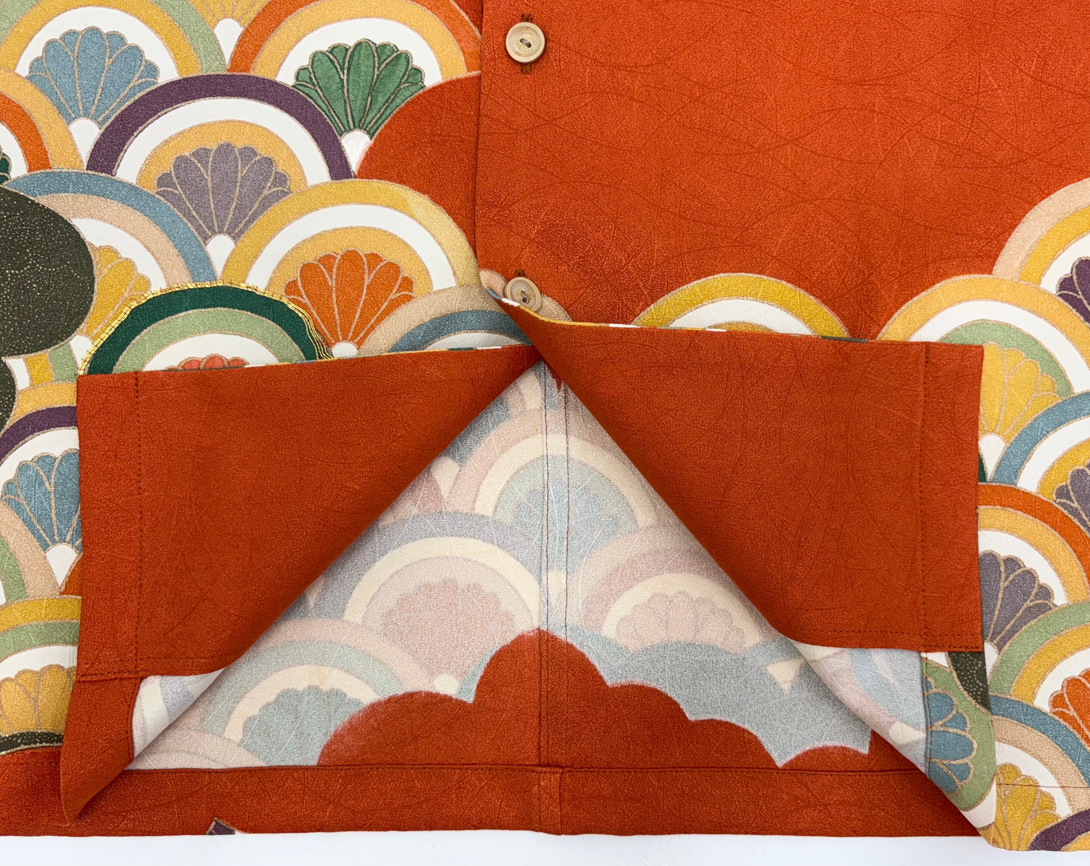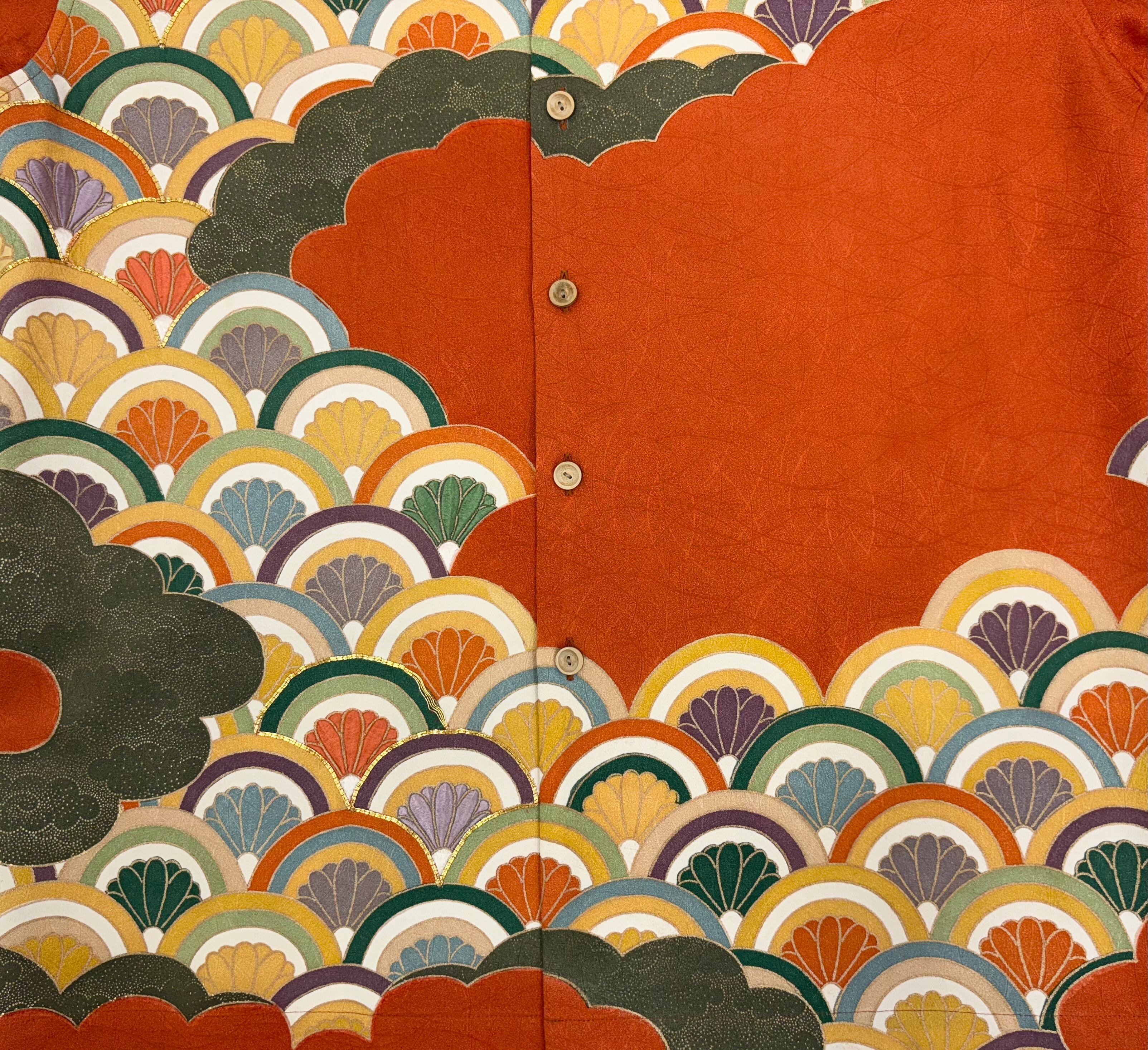 ヴィンテージの着物生地を使ってお仕立てした一点もののアロハシャツ。