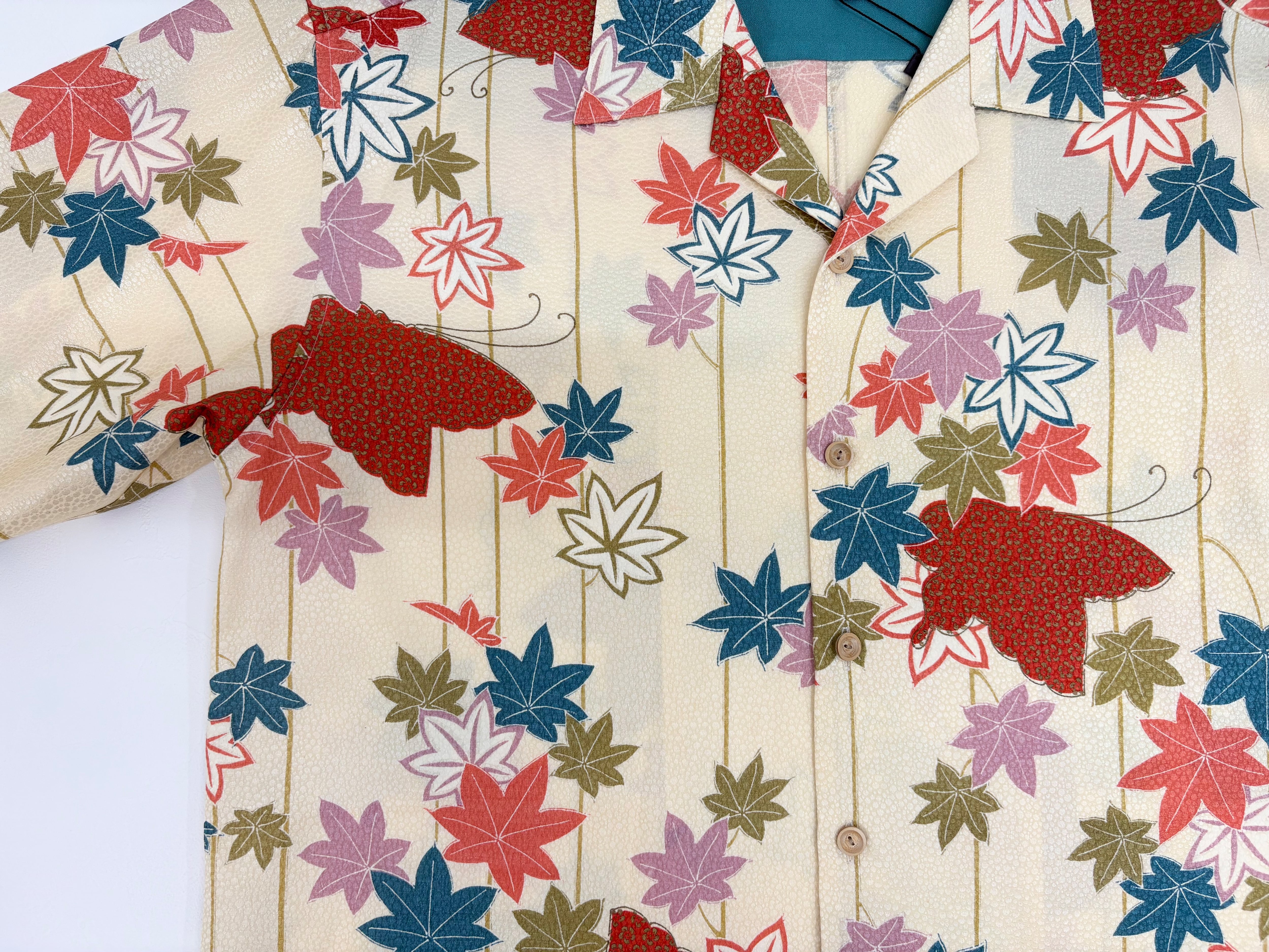 ヴィンテージの着物生地を使ってお仕立てした一点もののアロハシャツ。