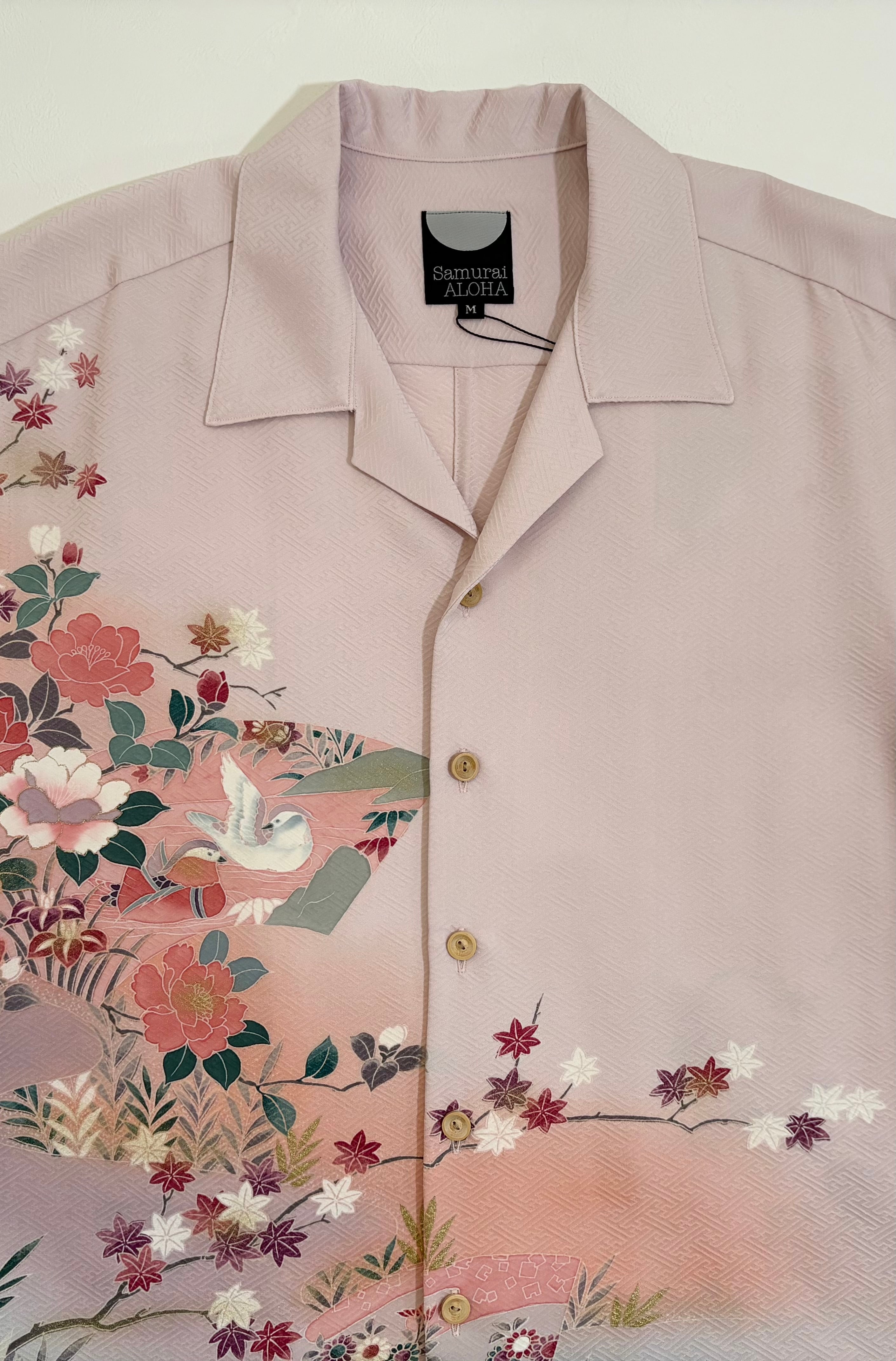 ヴィンテージの着物生地を使ってお仕立てした一点もののアロハシャツ。