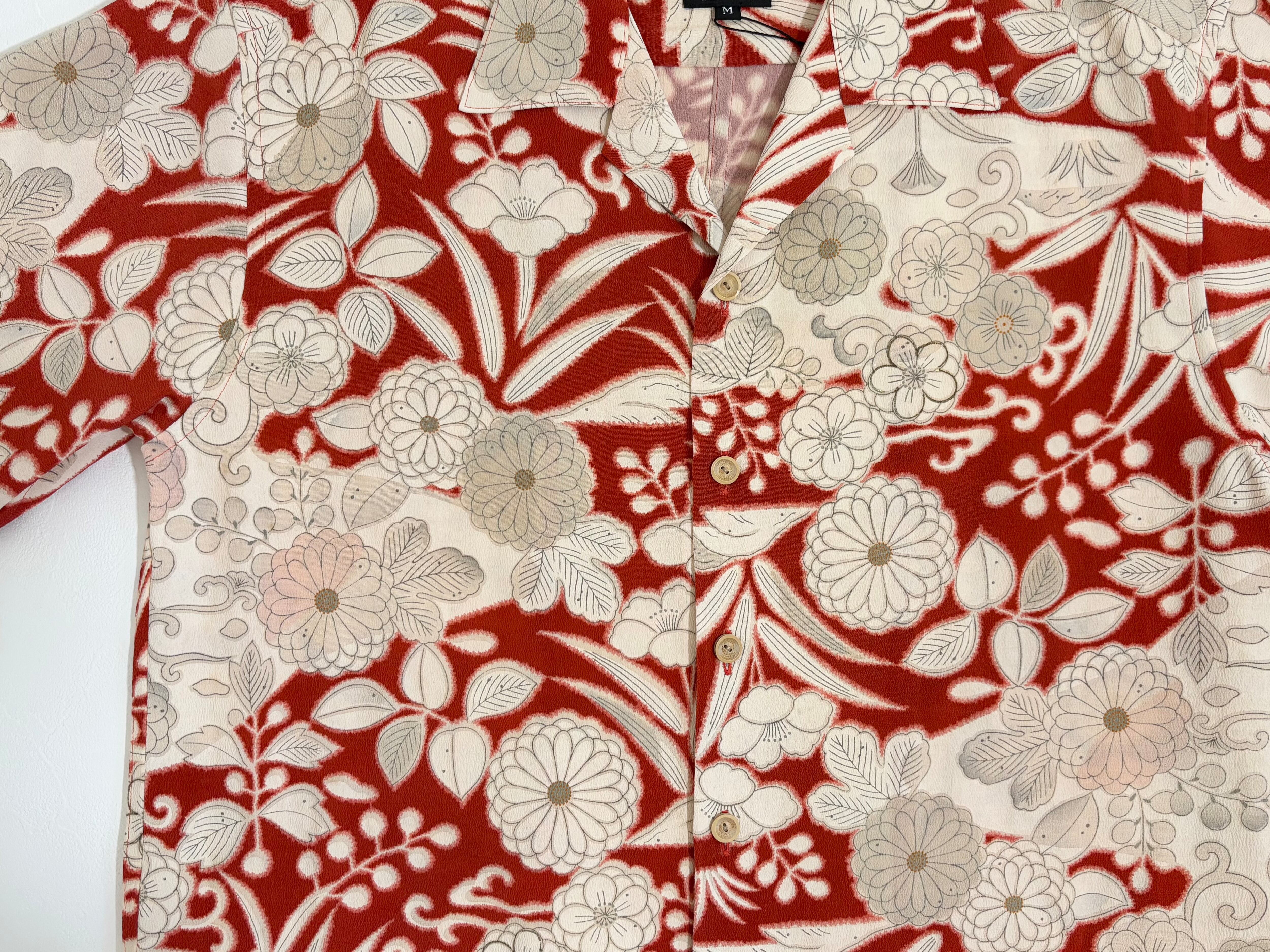 ヴィンテージの着物生地を使ってお仕立てした一点もののアロハシャツ。