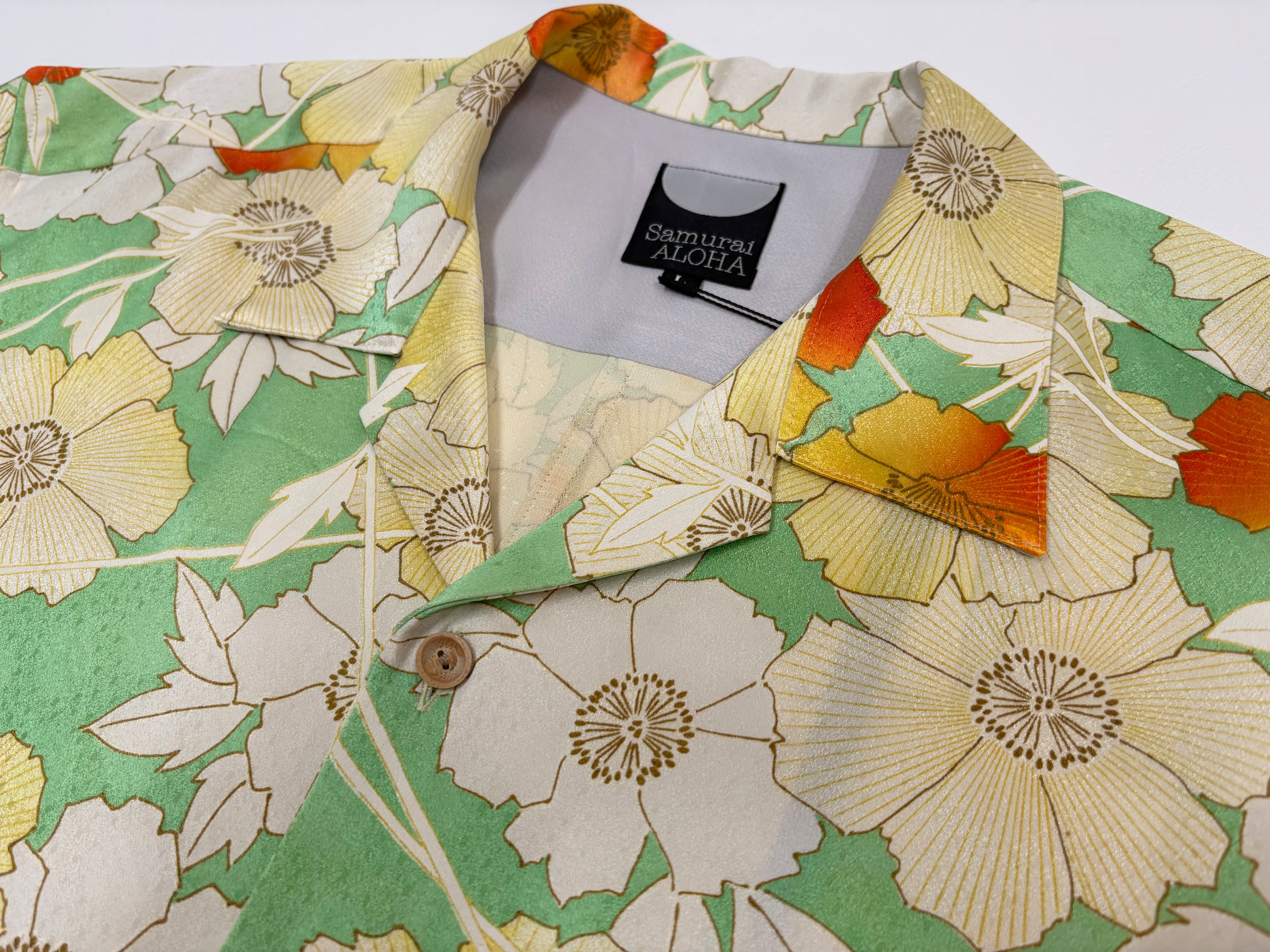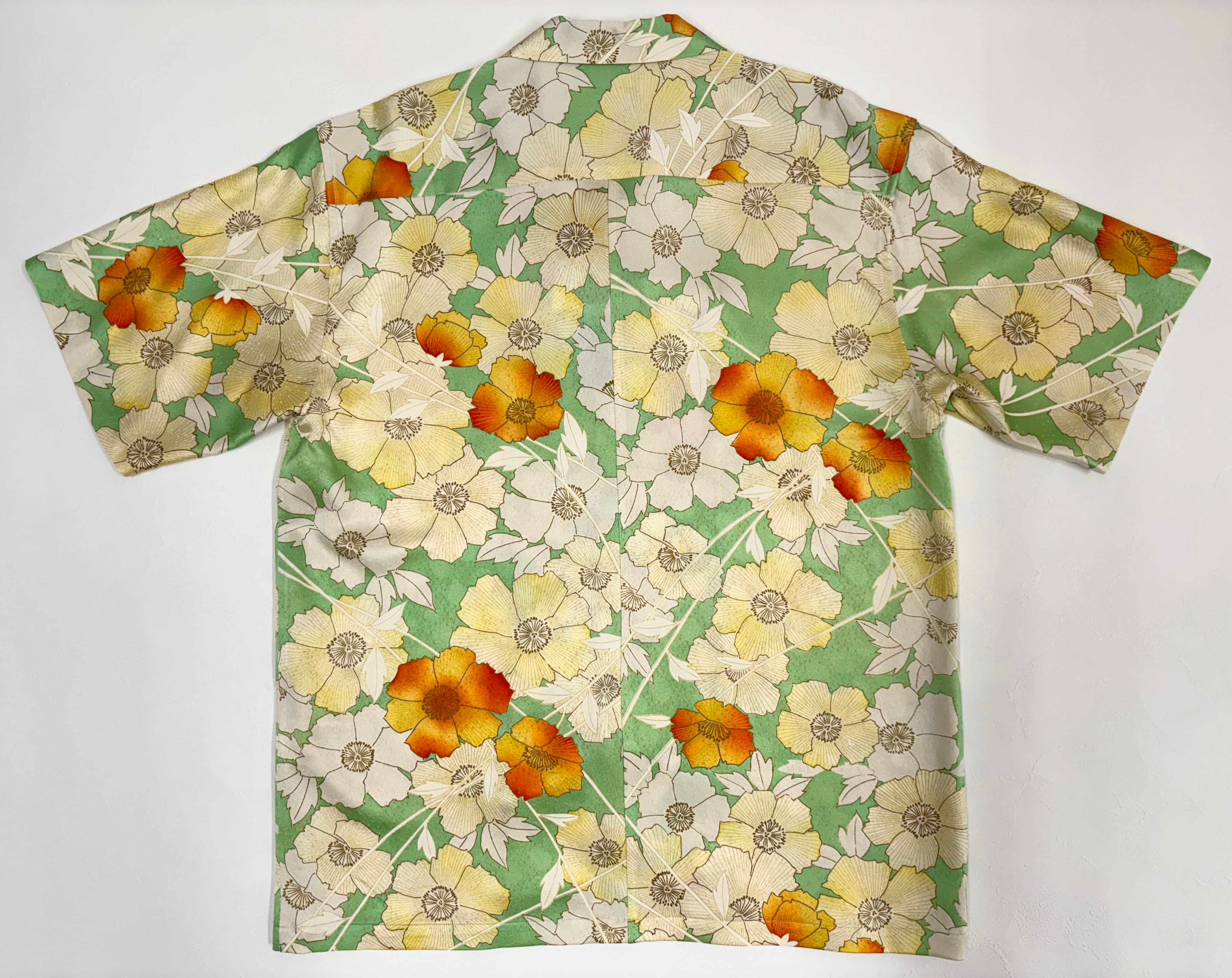 ヴィンテージの着物生地を使ってお仕立てした一点もののアロハシャツ。