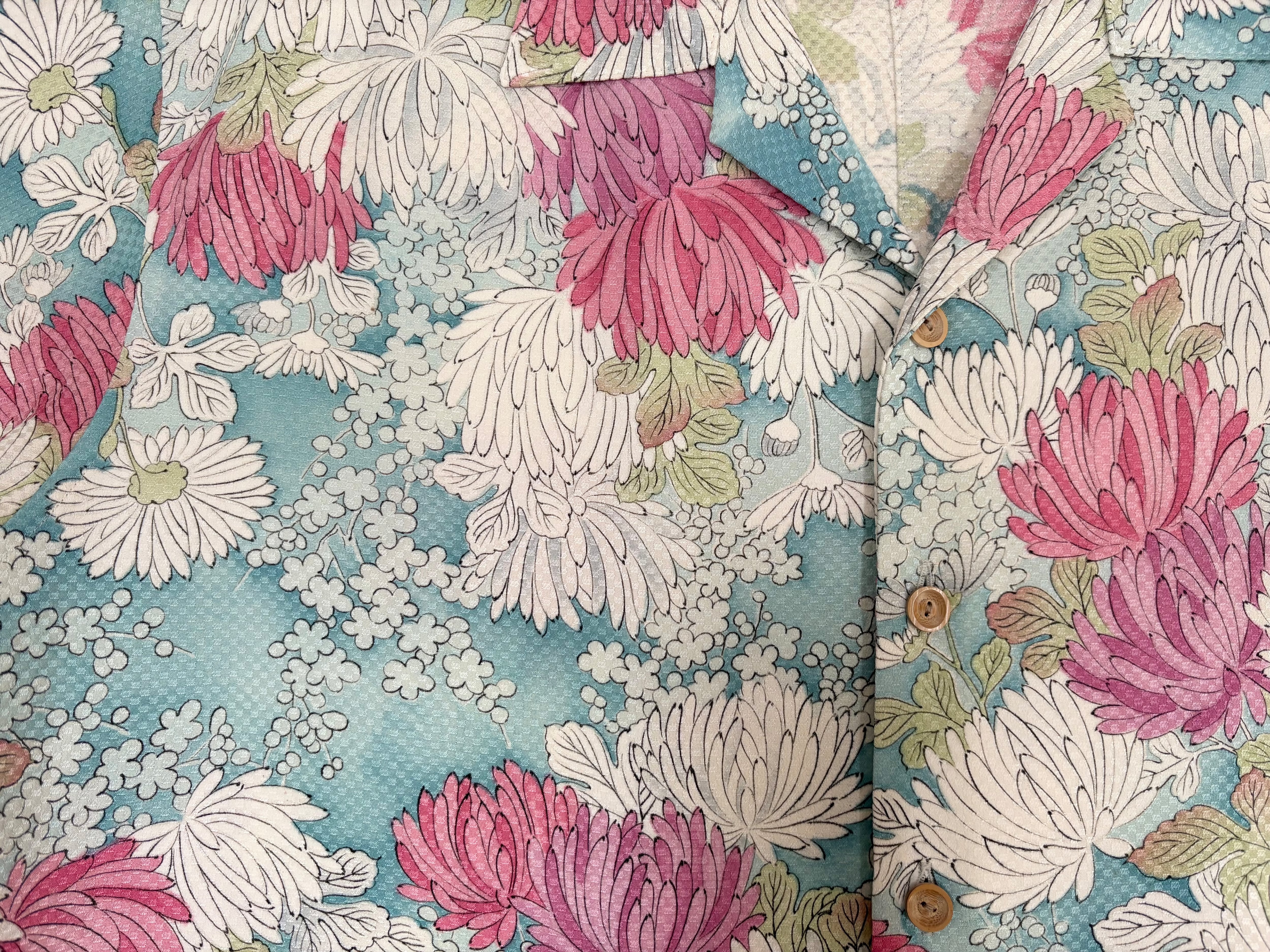 ヴィンテージの着物生地を使ってお仕立てした一点もののアロハシャツ。
