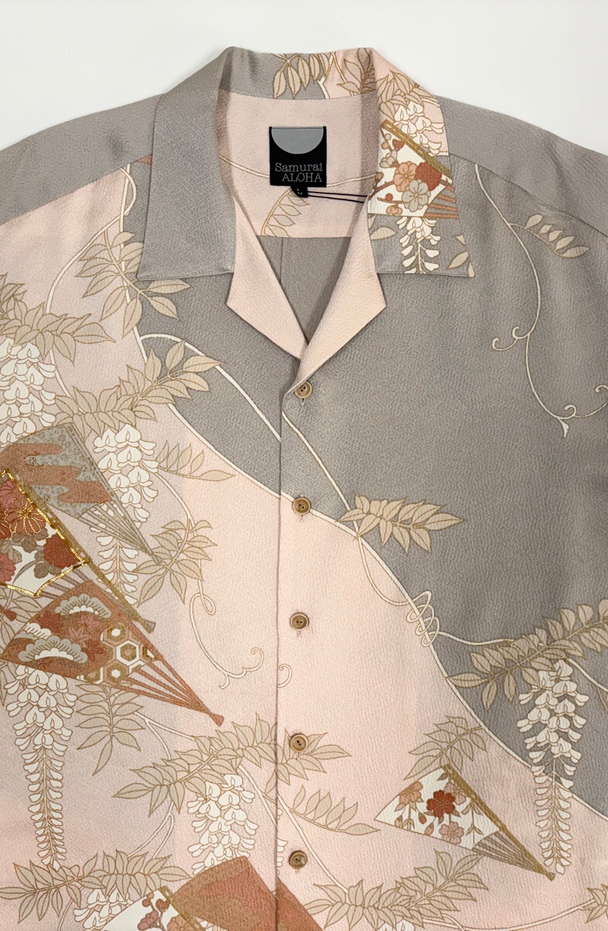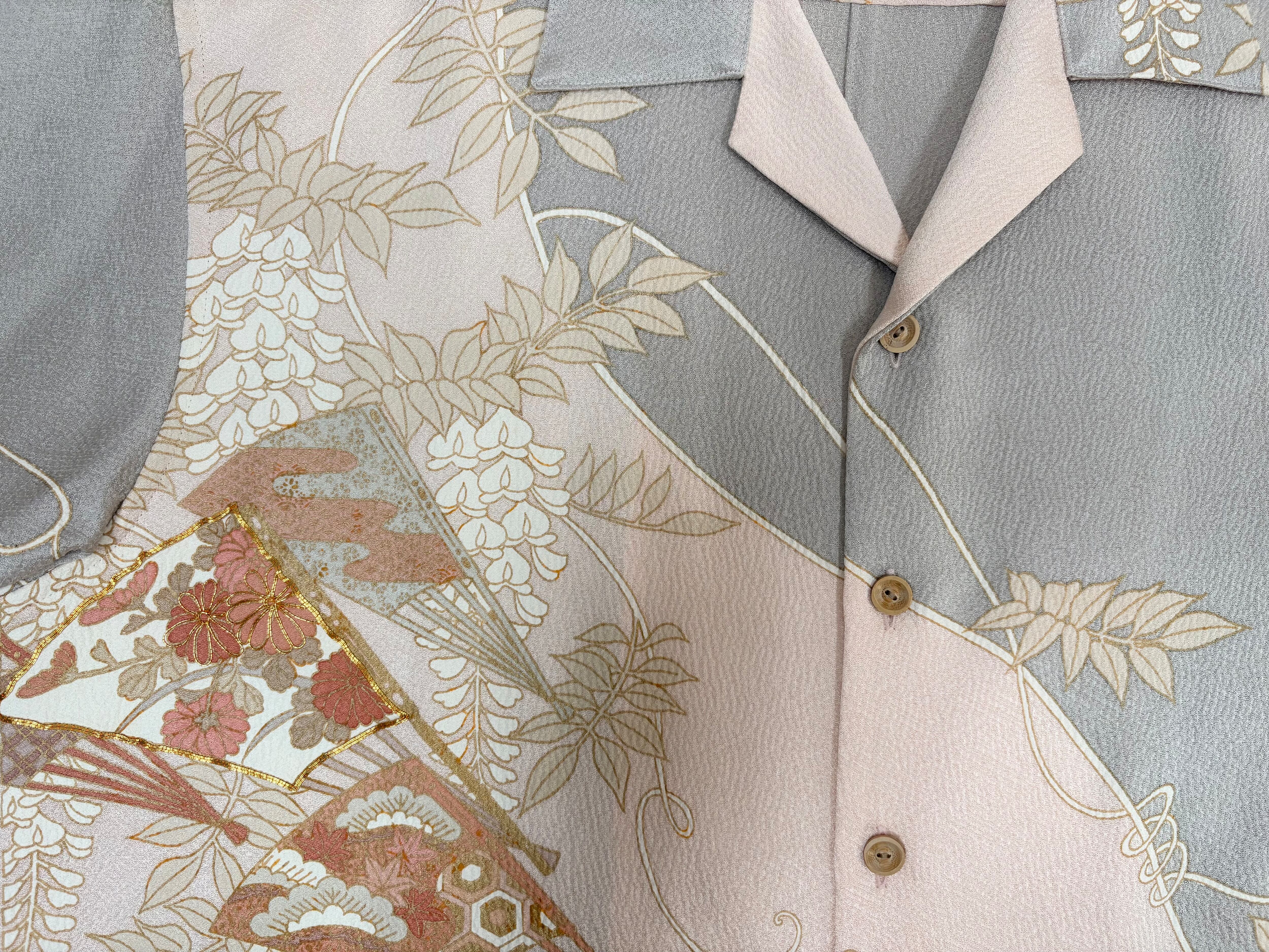 ヴィンテージの着物生地を使ってお仕立てした一点もののアロハシャツ。