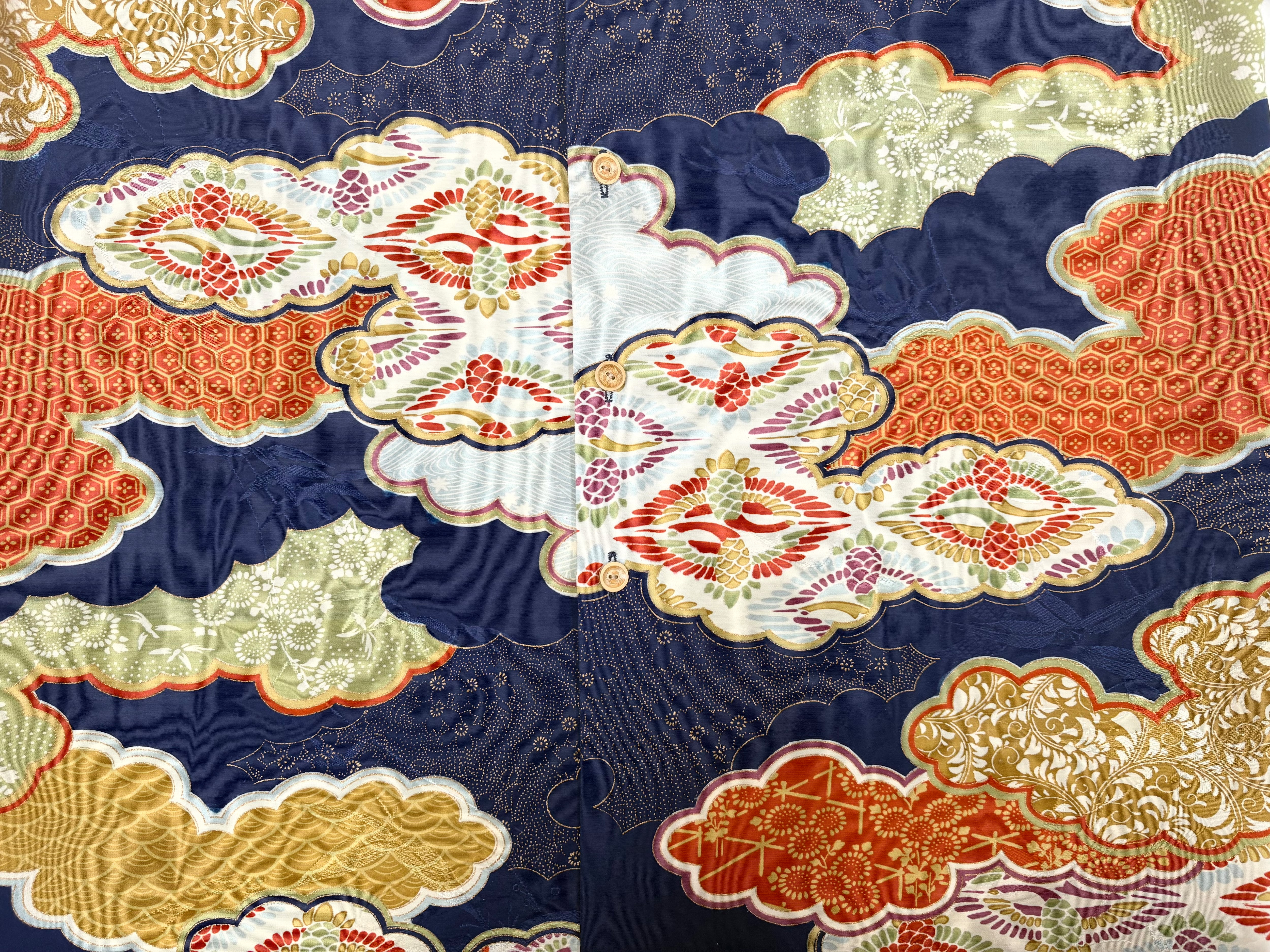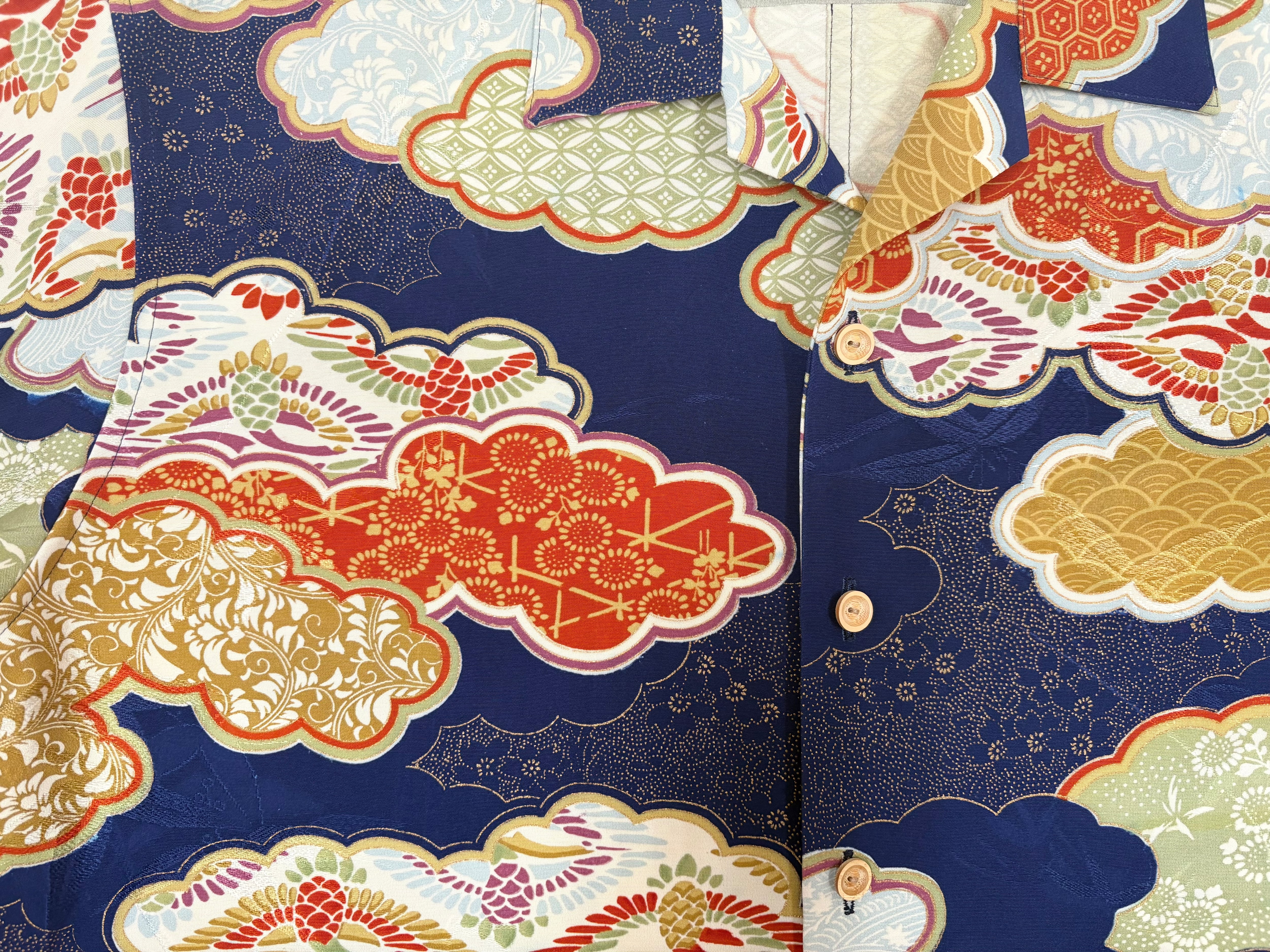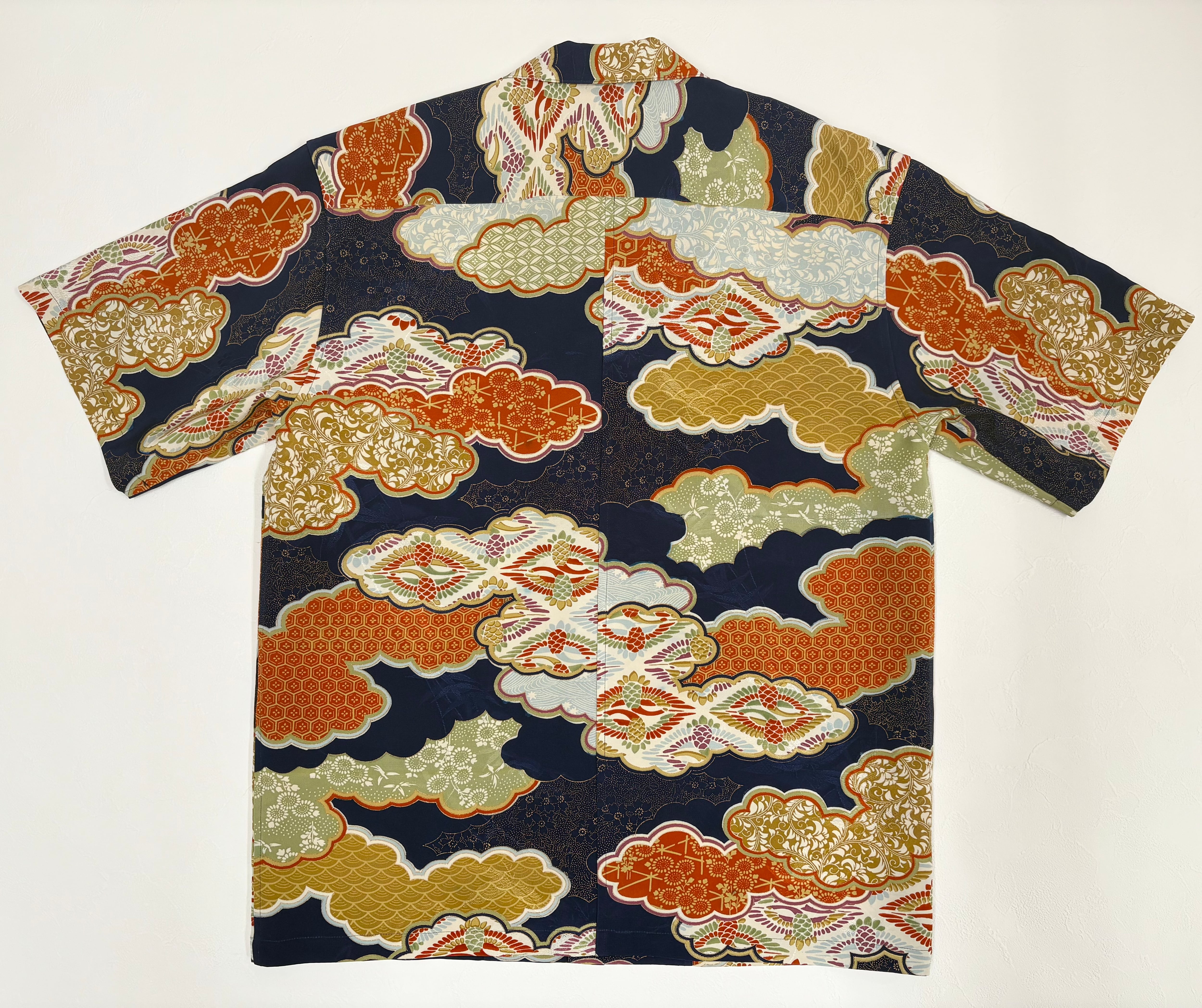 ヴィンテージの着物生地を使ってお仕立てした一点もののアロハシャツ。