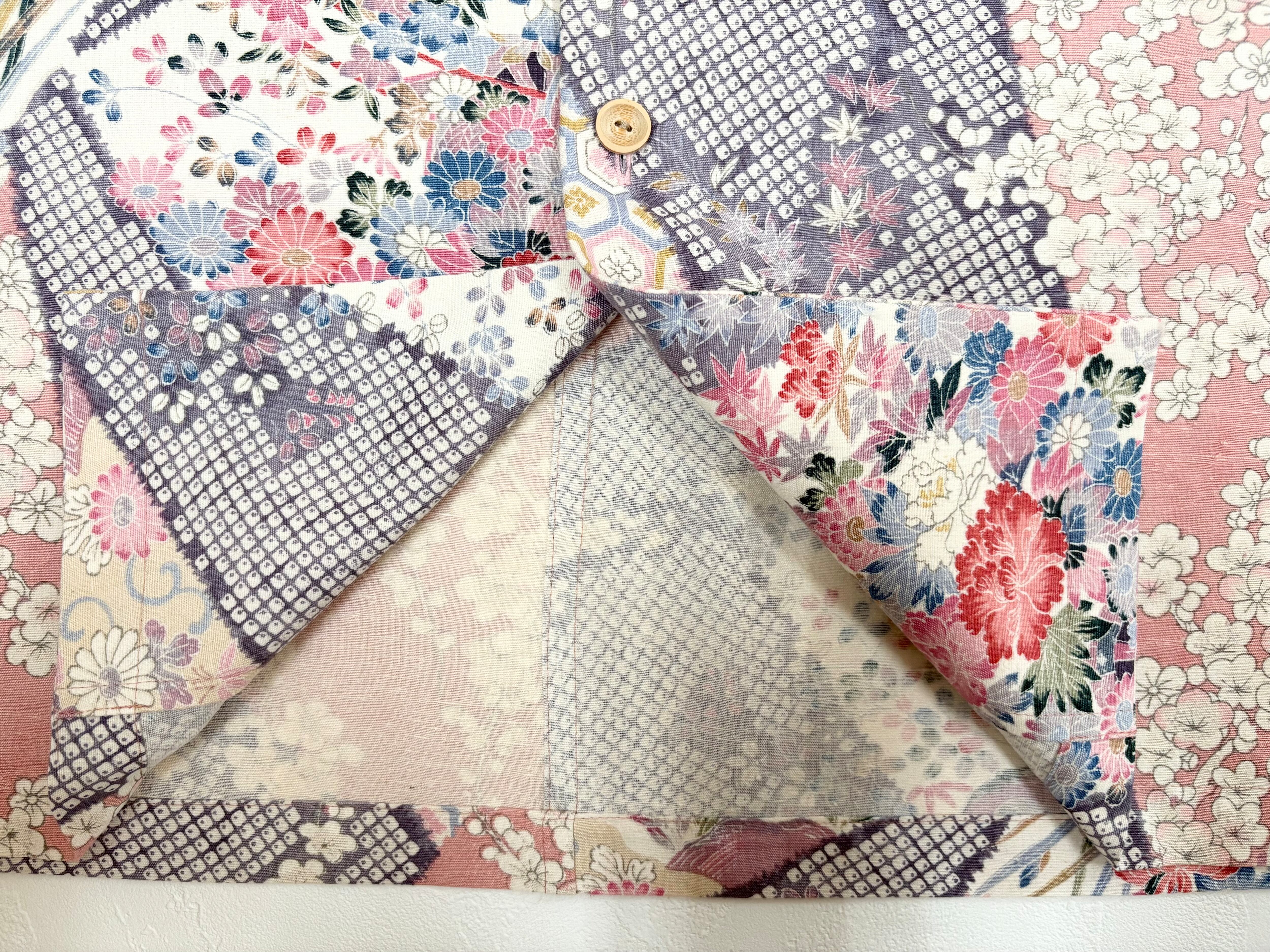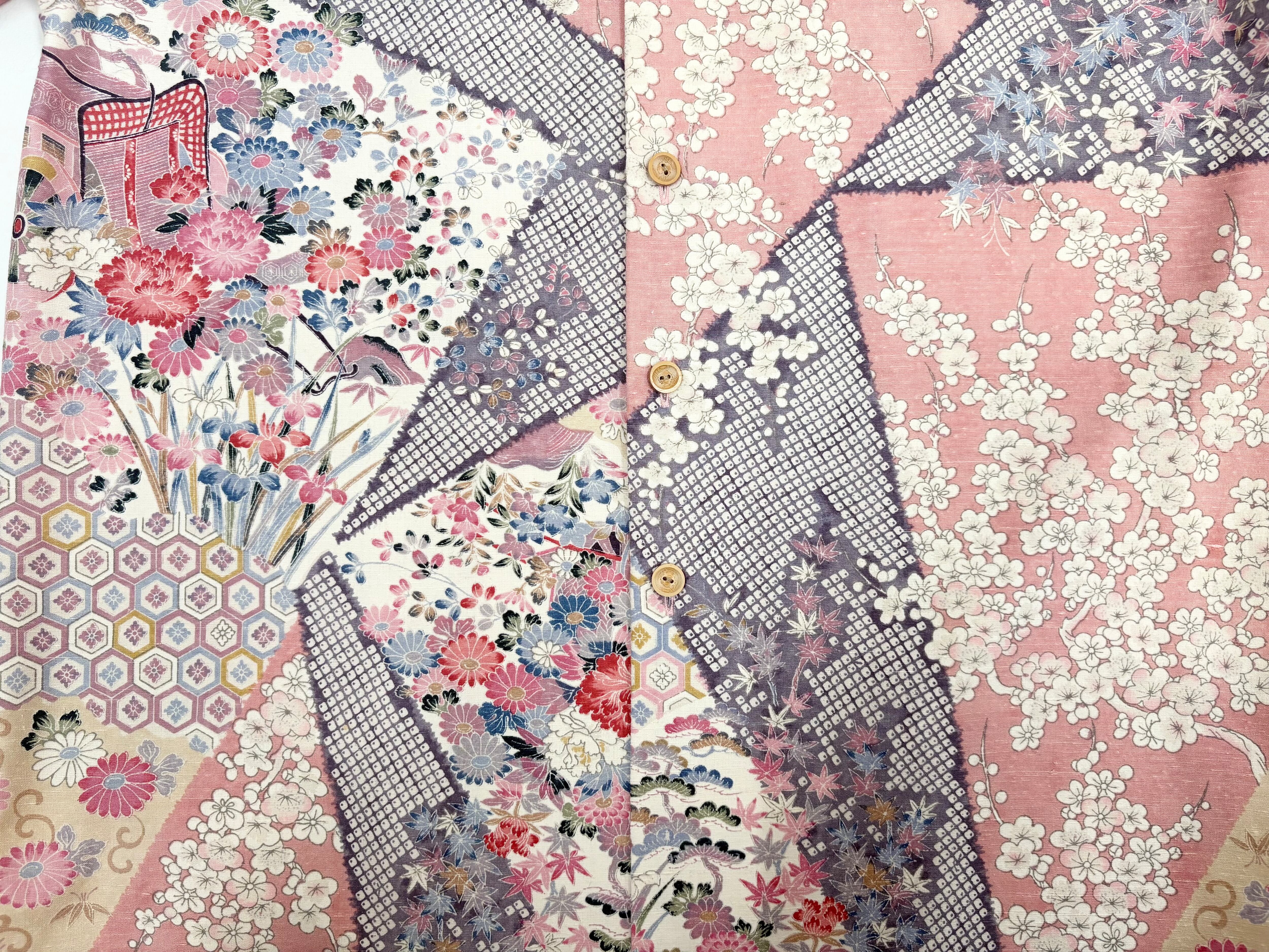 ヴィンテージの着物生地を使ってお仕立てした一点もののアロハシャツ。