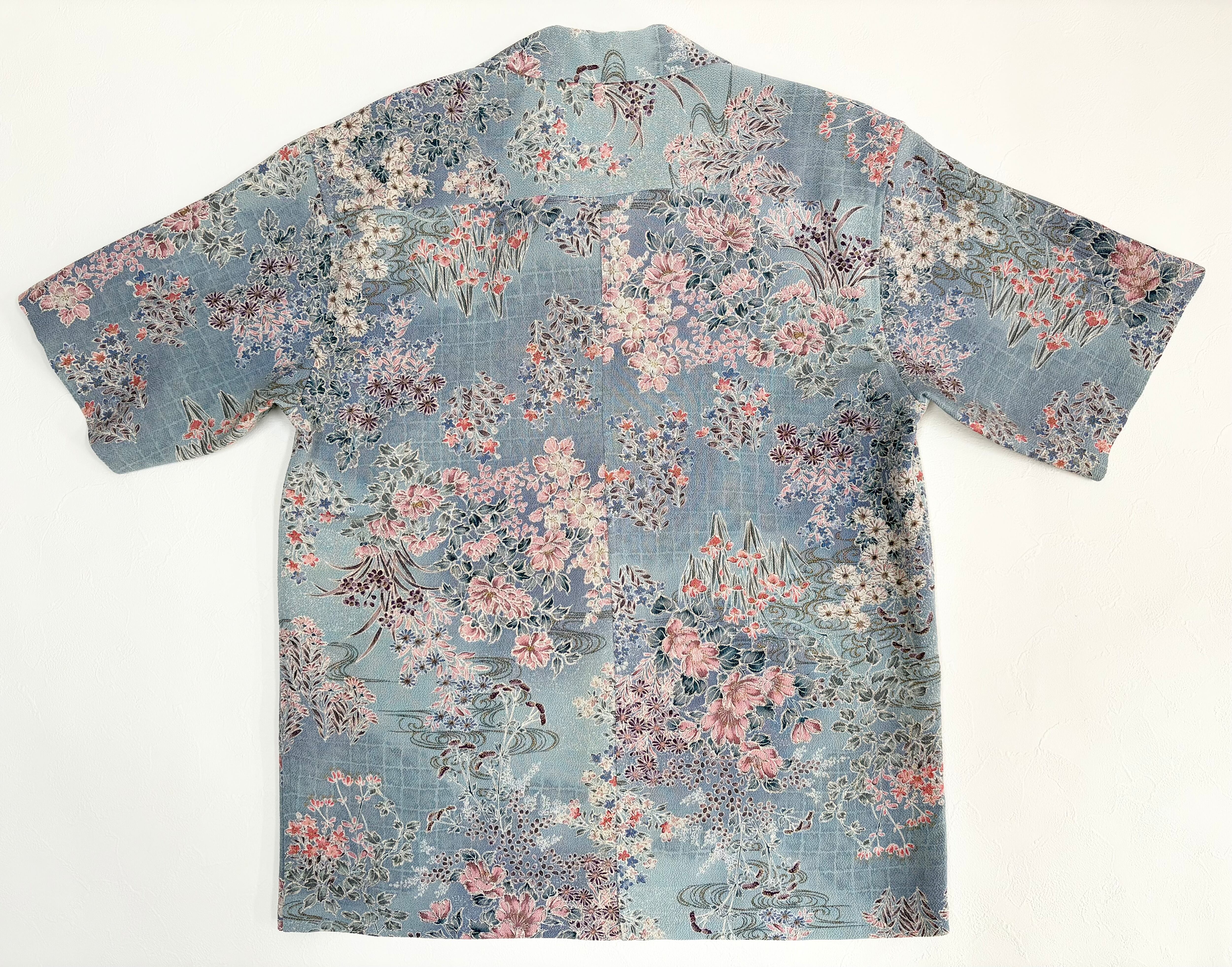 ヴィンテージの着物生地を使ってお仕立てした一点もののアロハシャツ。