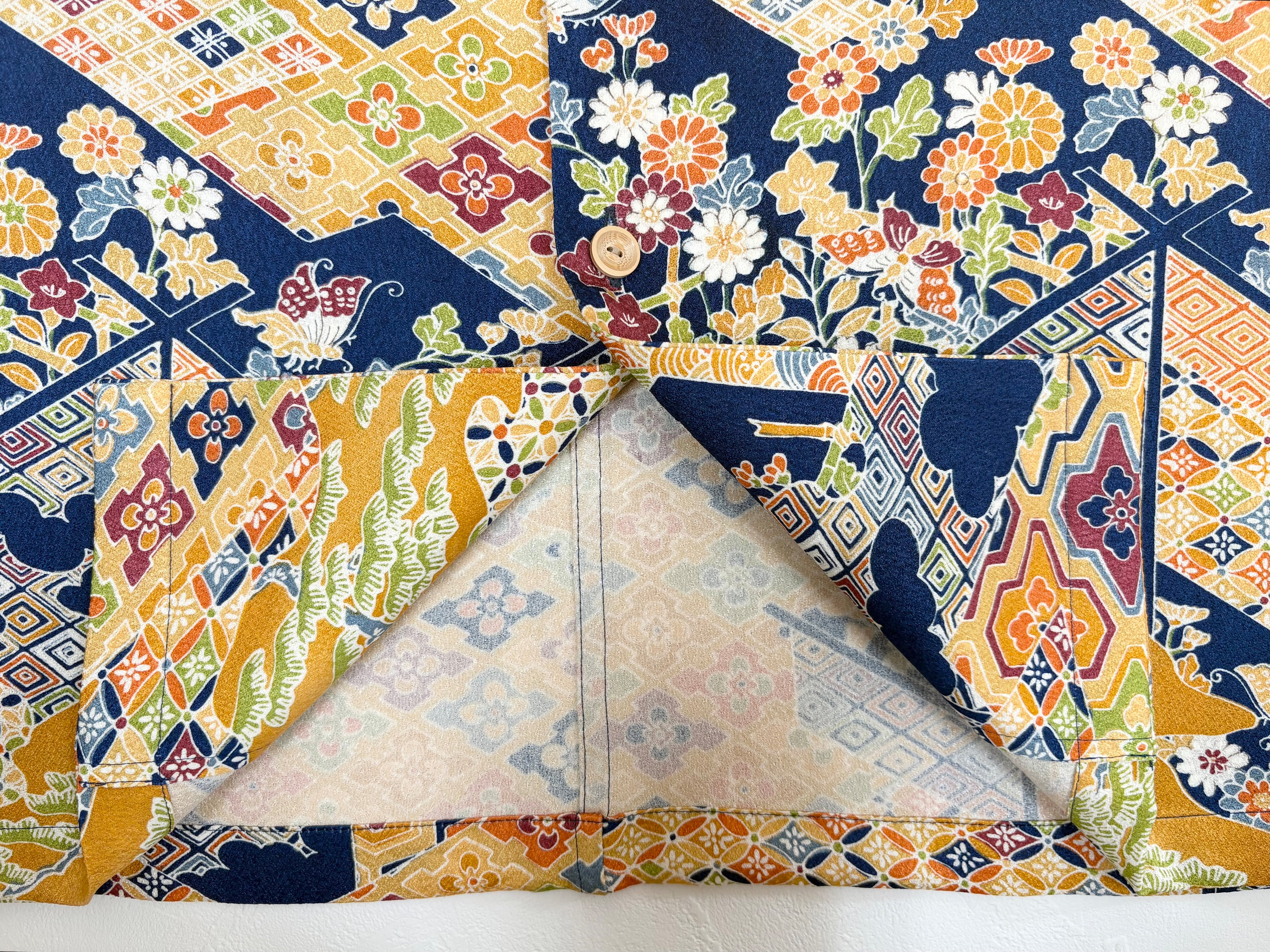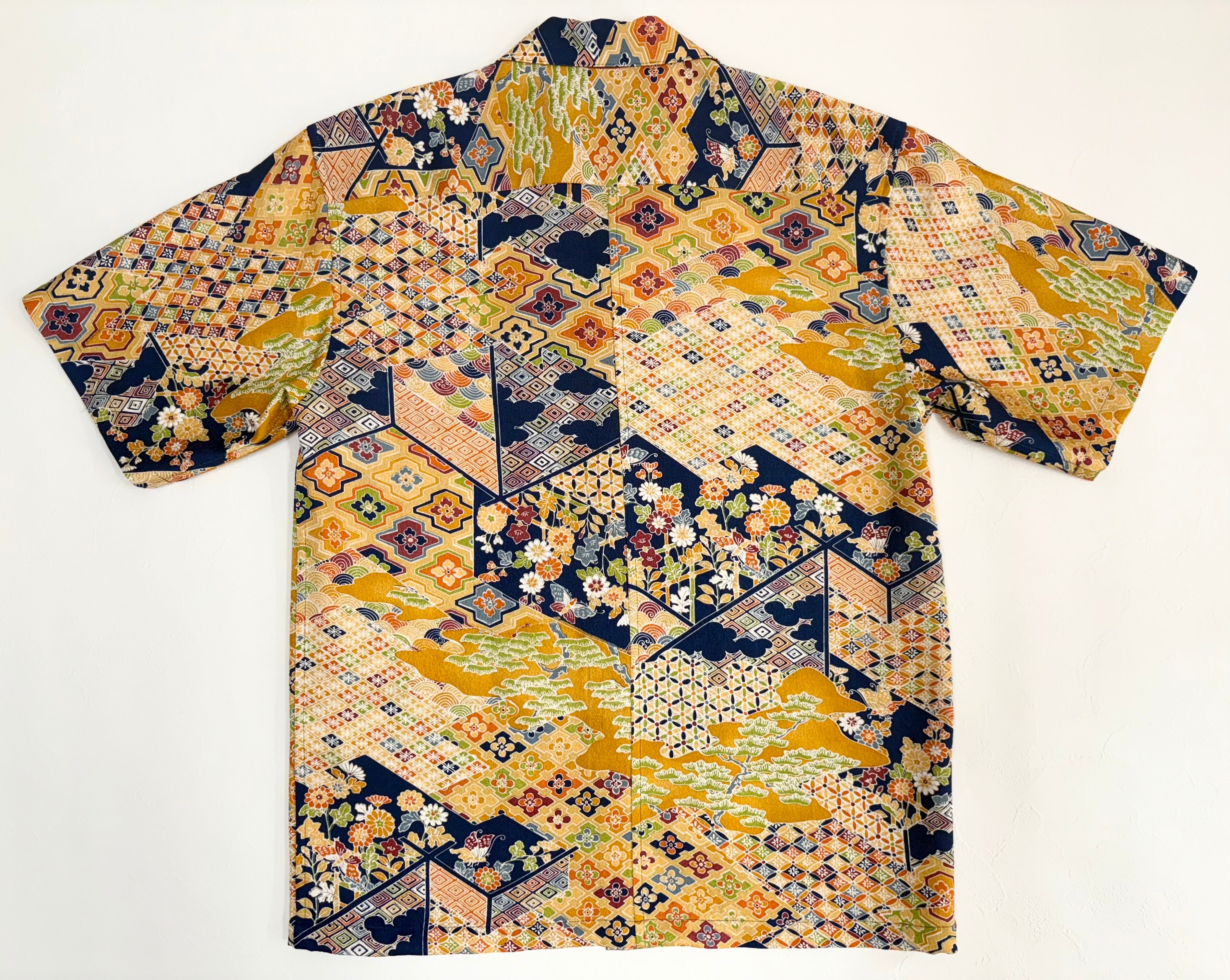ヴィンテージの着物生地を使ってお仕立てした一点もののアロハシャツ。
