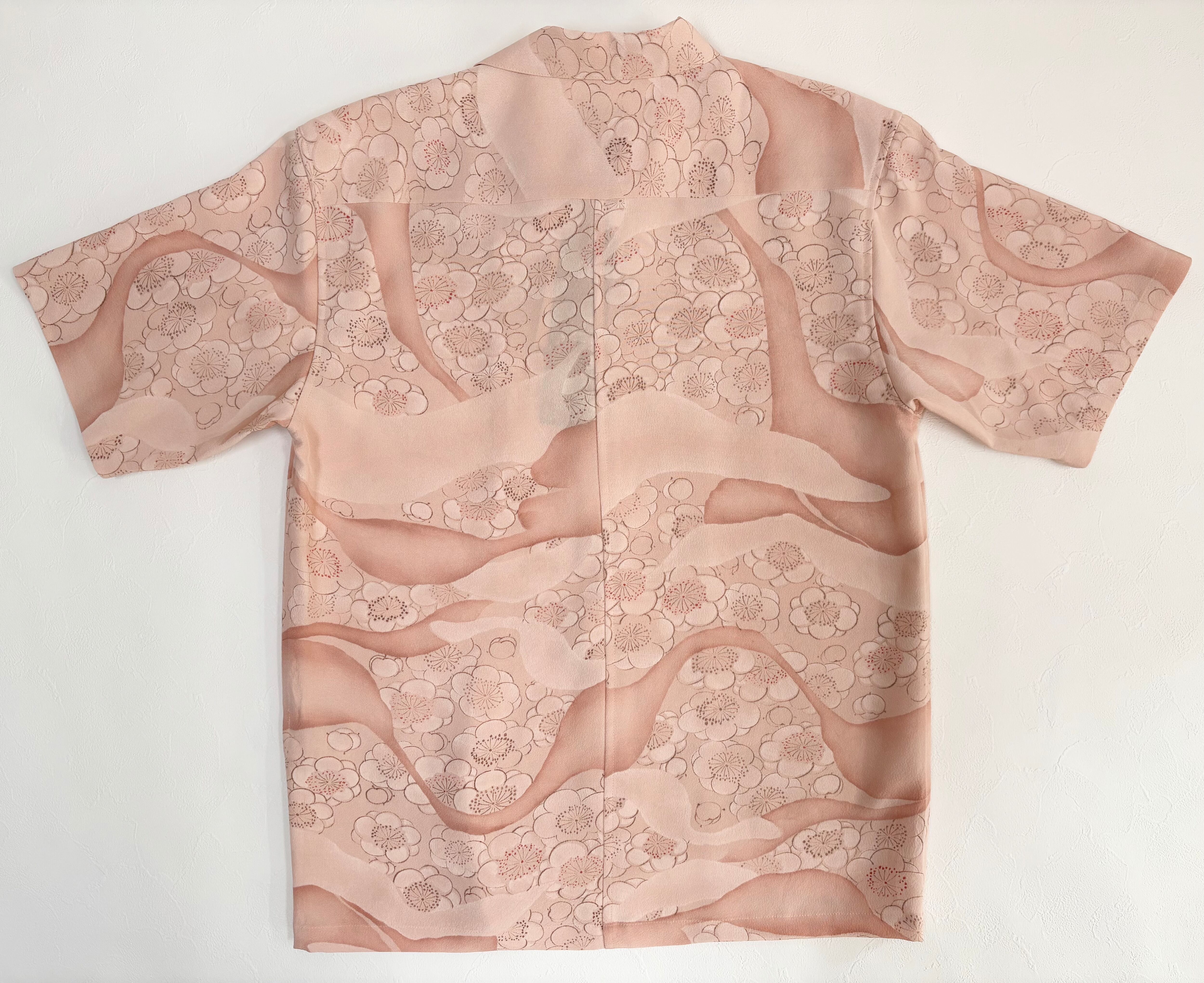 ヴィンテージの着物生地を使ってお仕立てした一点もののアロハシャツ。
