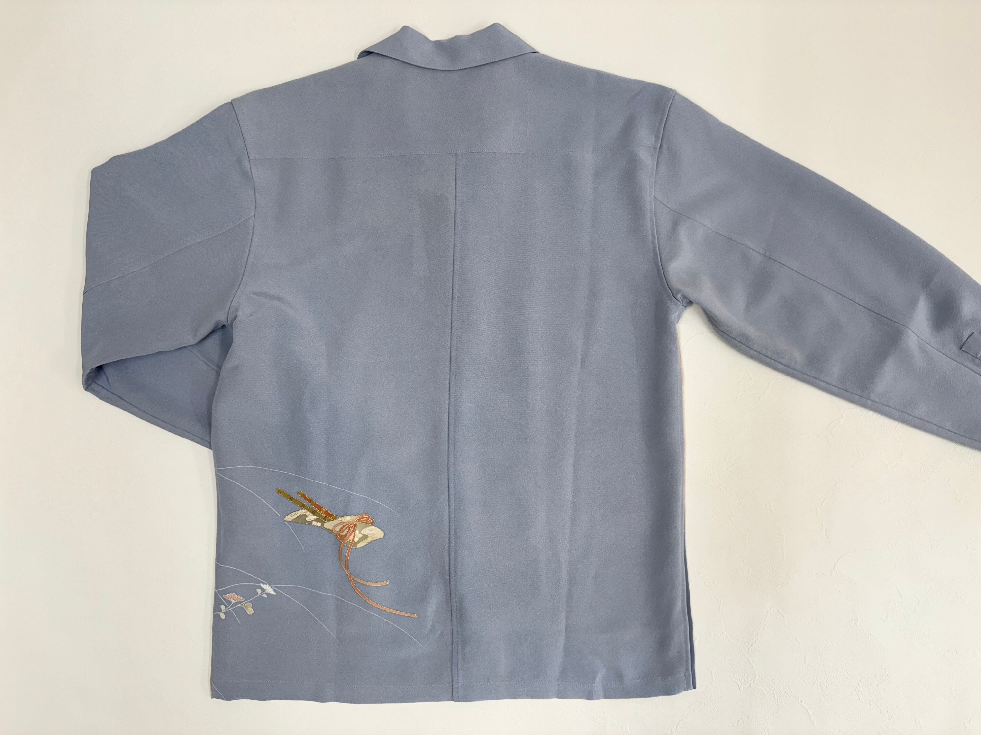 ヴィンテージの着物生地を使ってお仕立てした一点もののサムライアロハ。