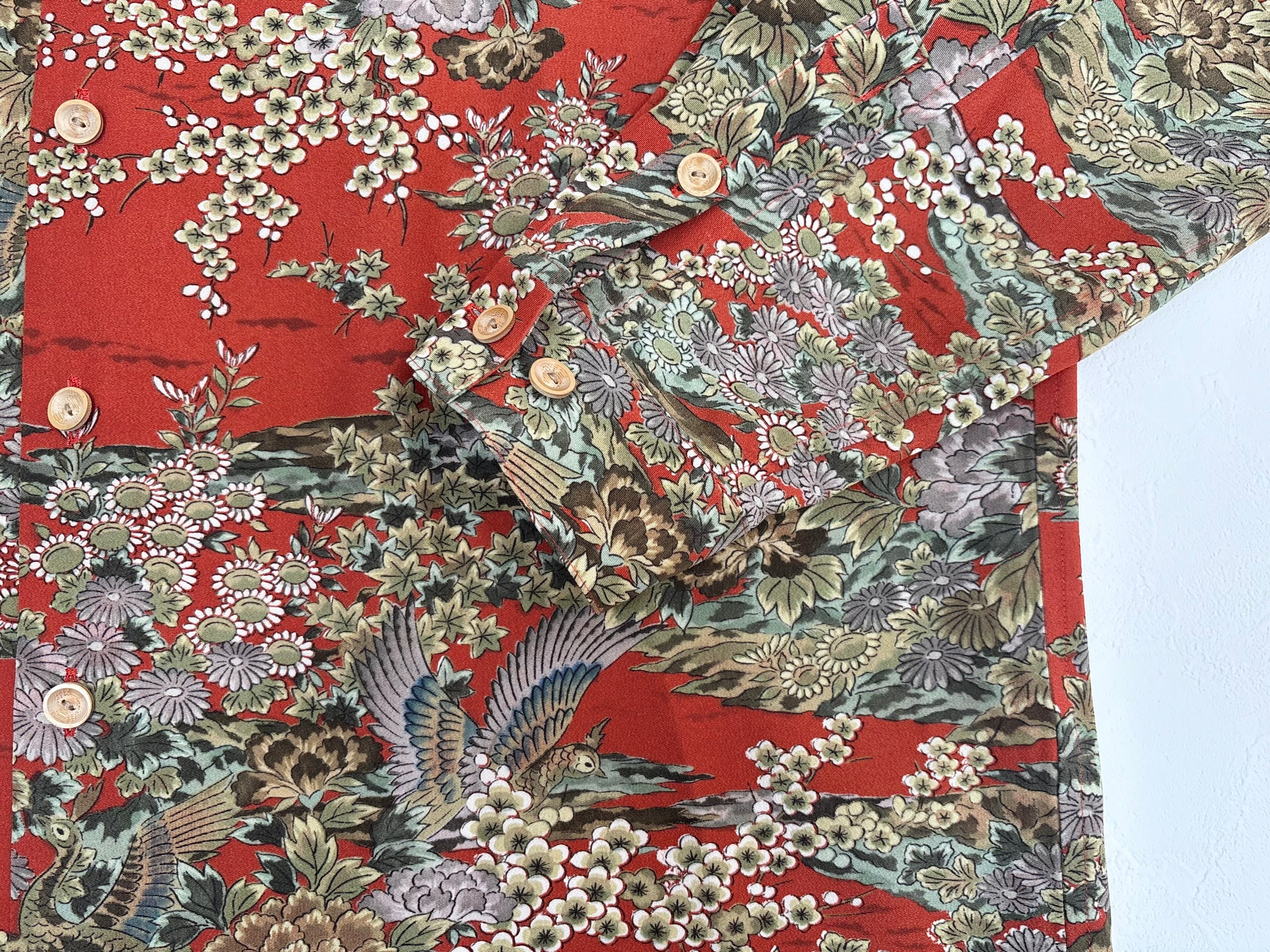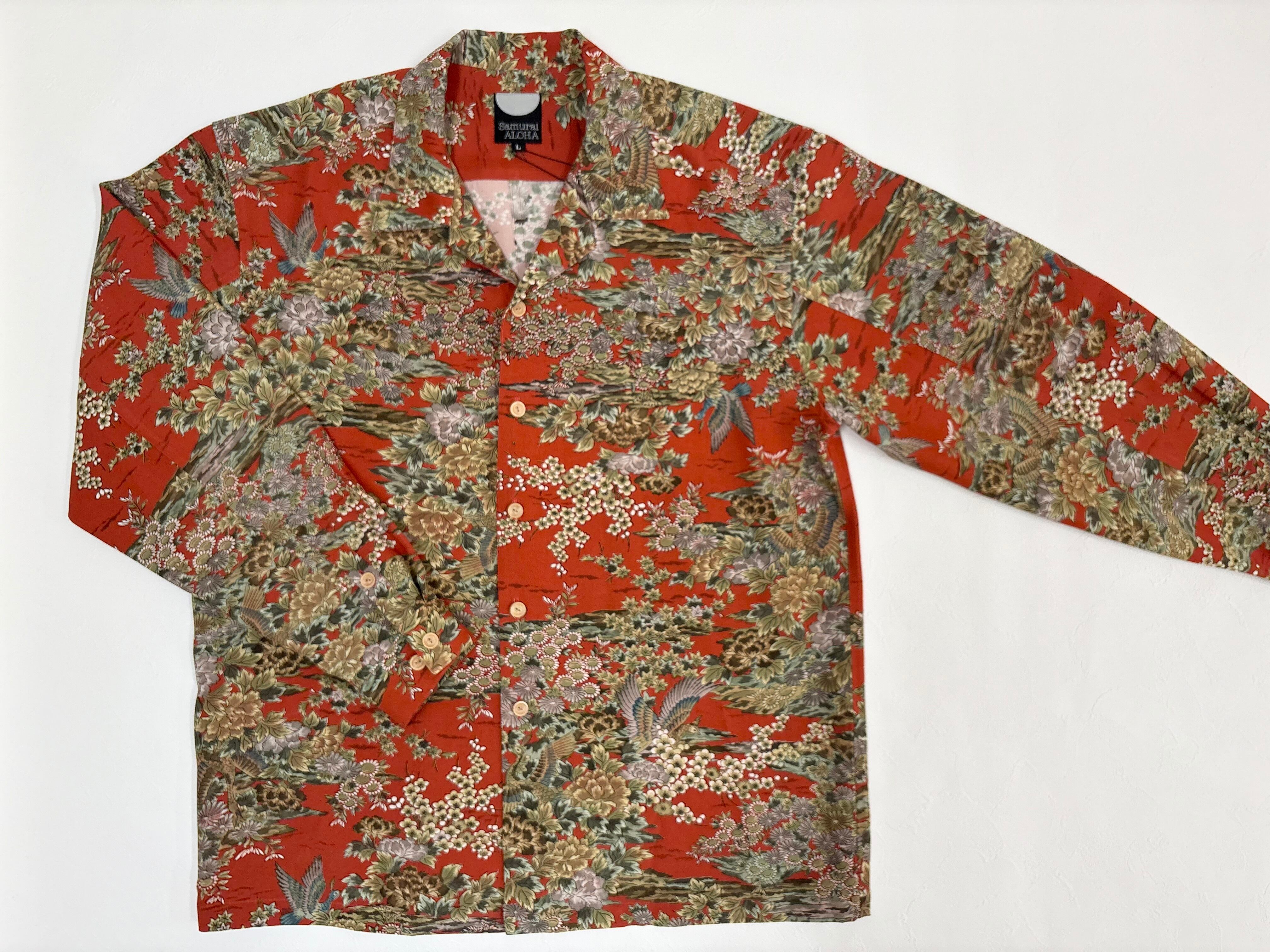 ヴィンテージの着物生地を使ってお仕立てした一点もののサムライアロハ長袖です。