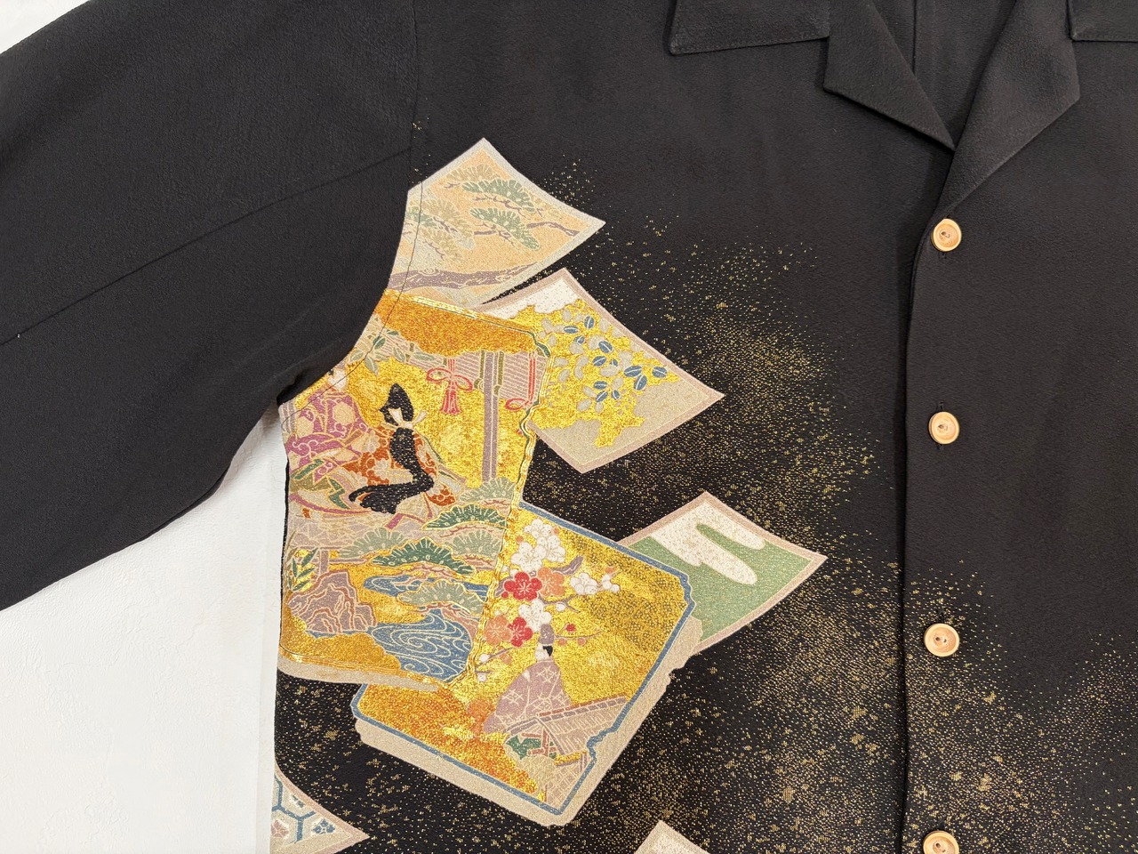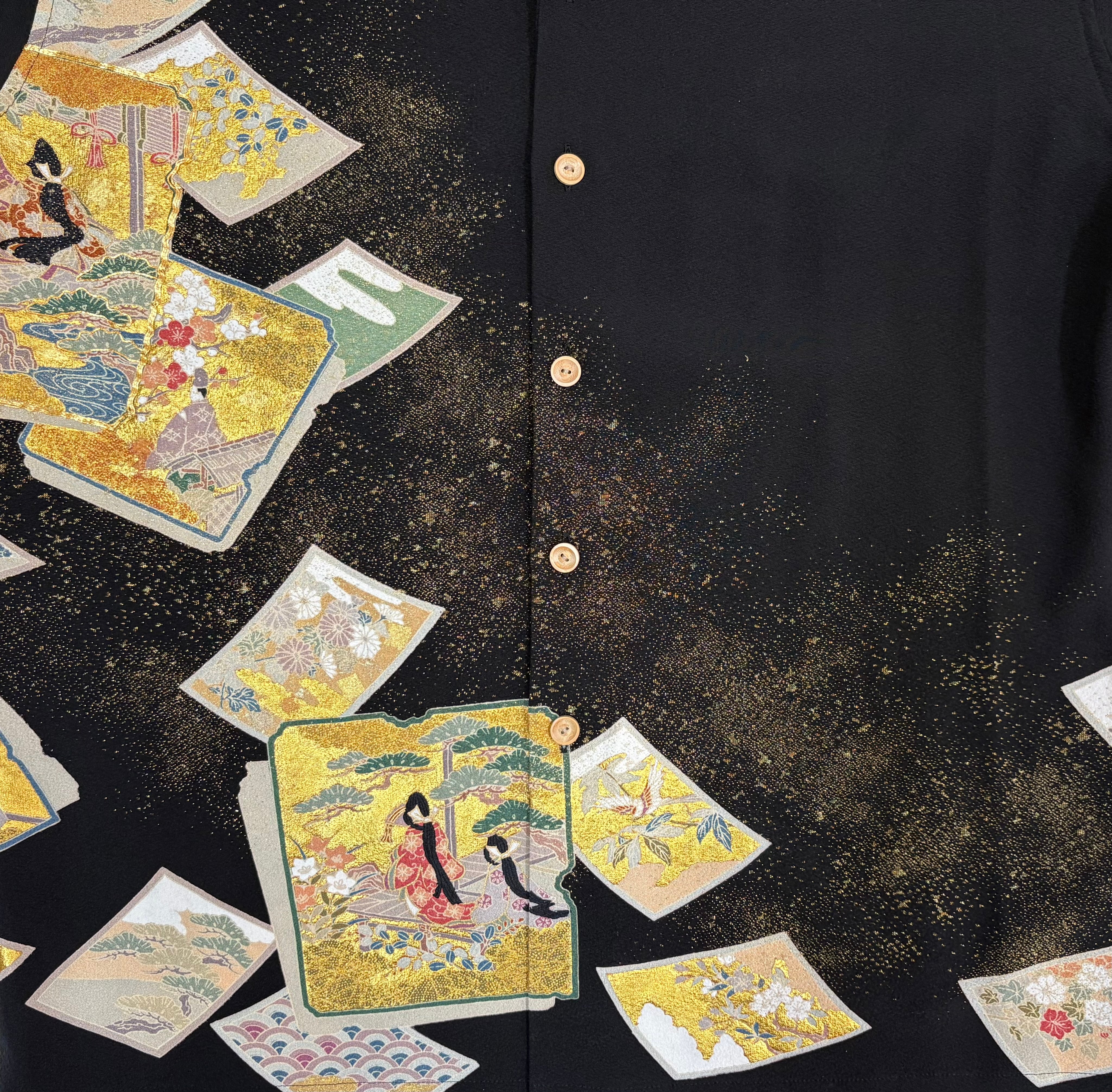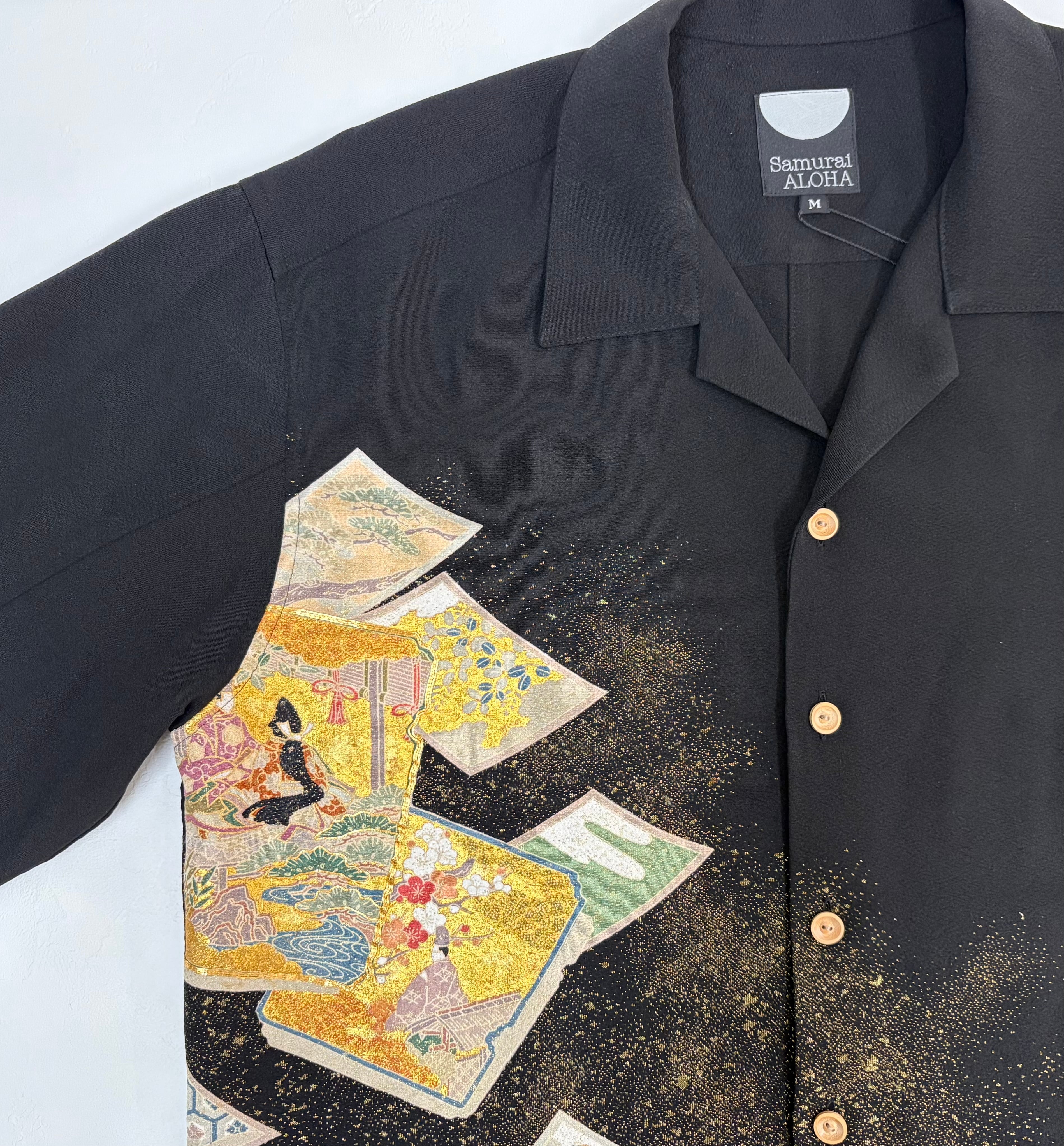 ヴィンテージの着物生地を使ってお仕立てした一点もののサムライアロハ。
