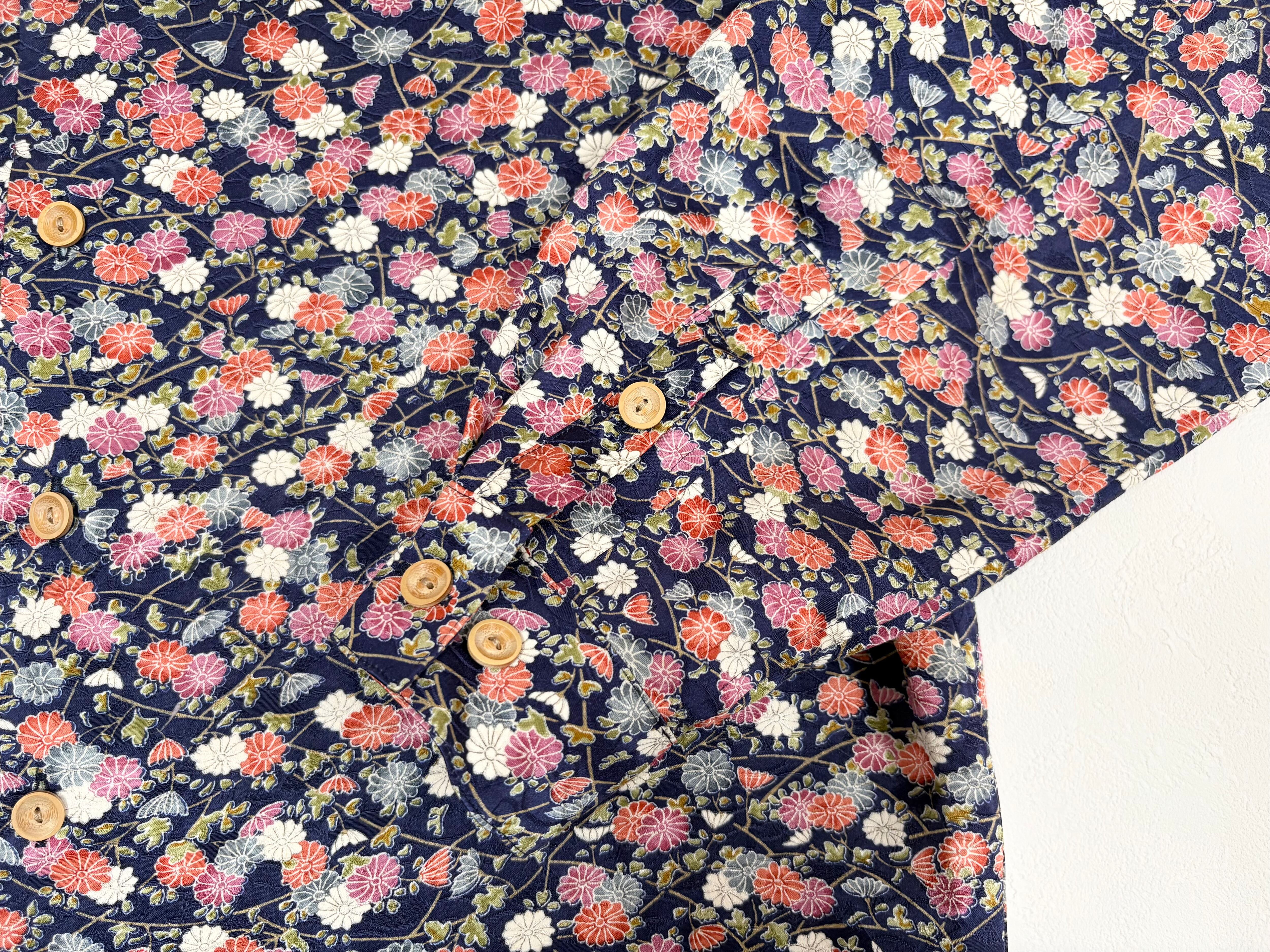 ヴィンテージの着物生地を使ってお仕立てした一点もののサムライアロハ。