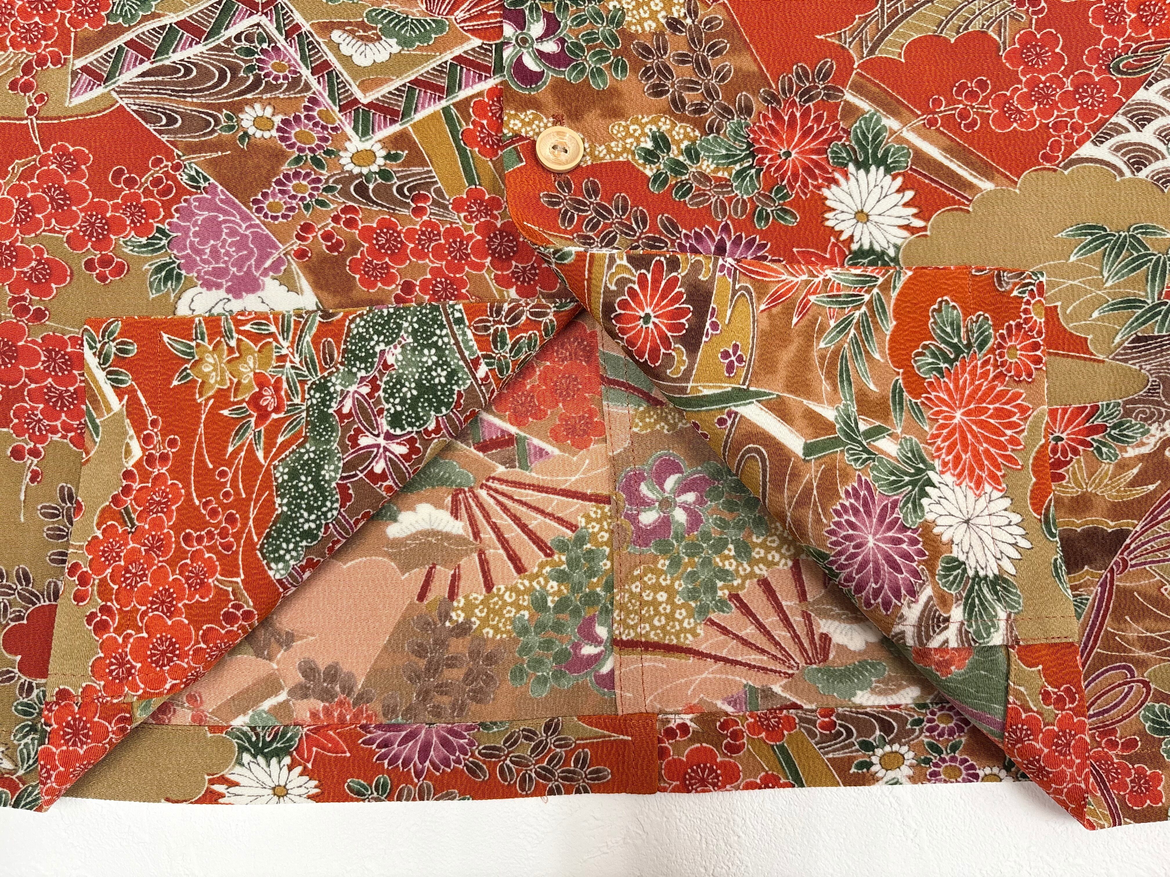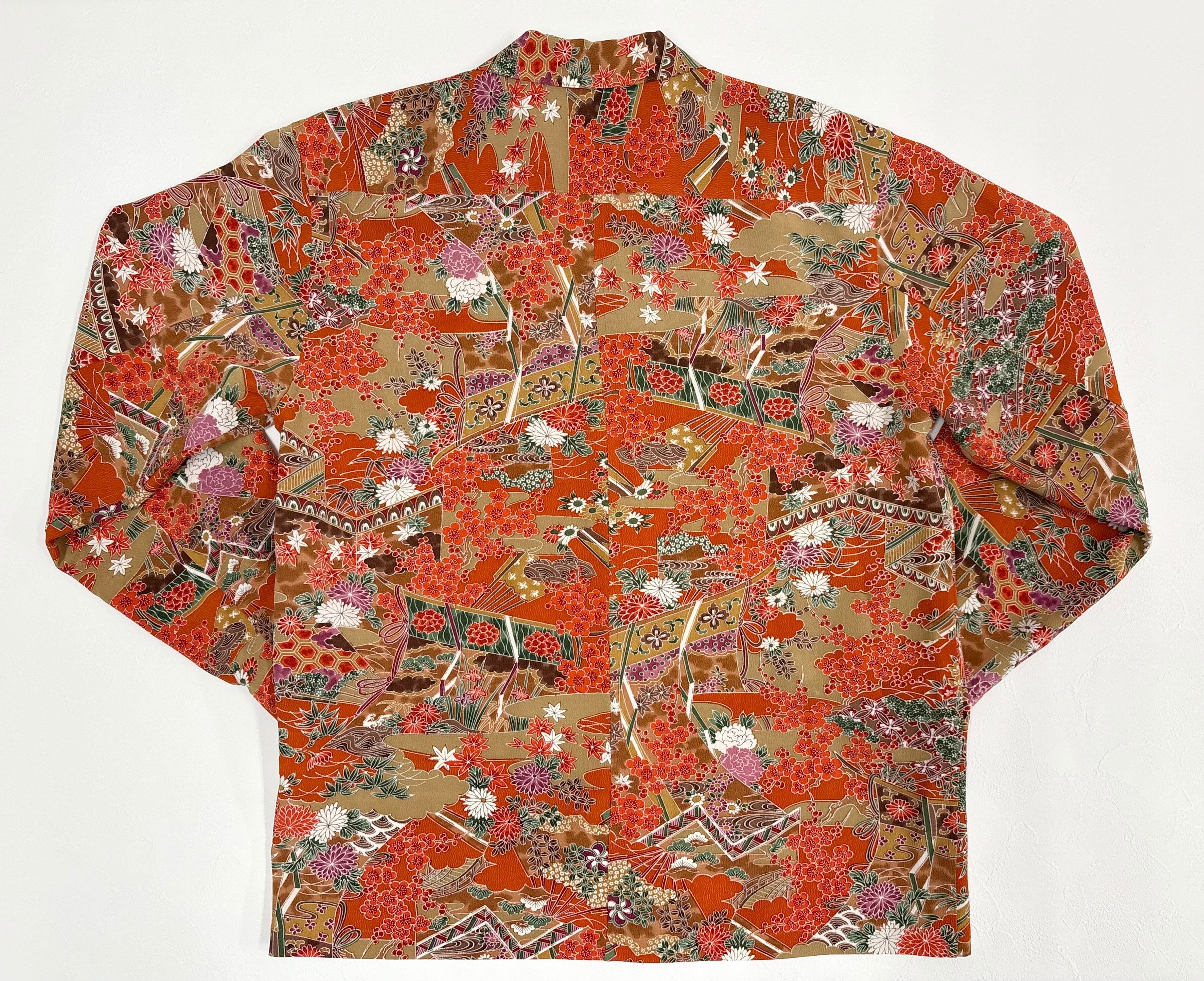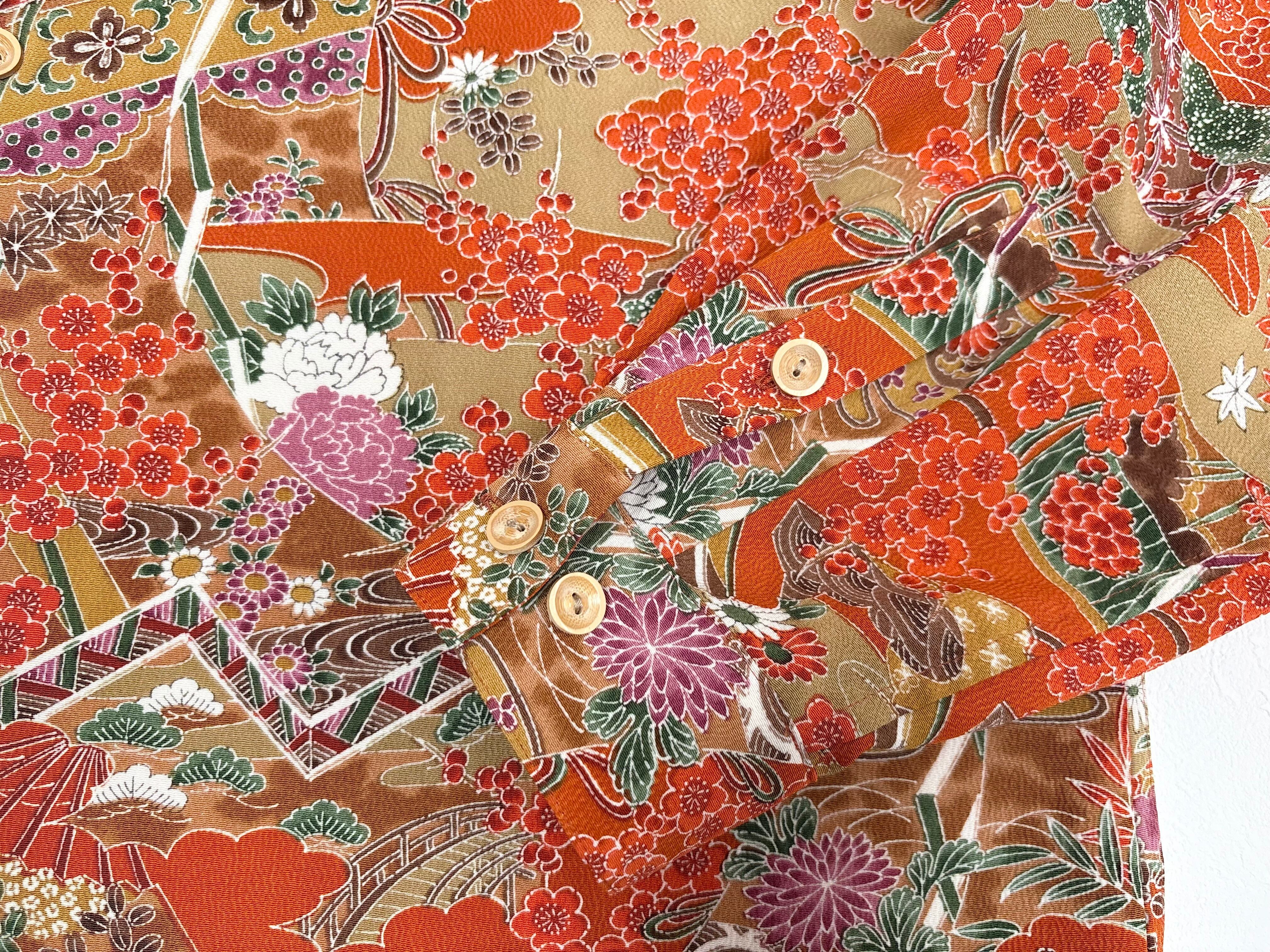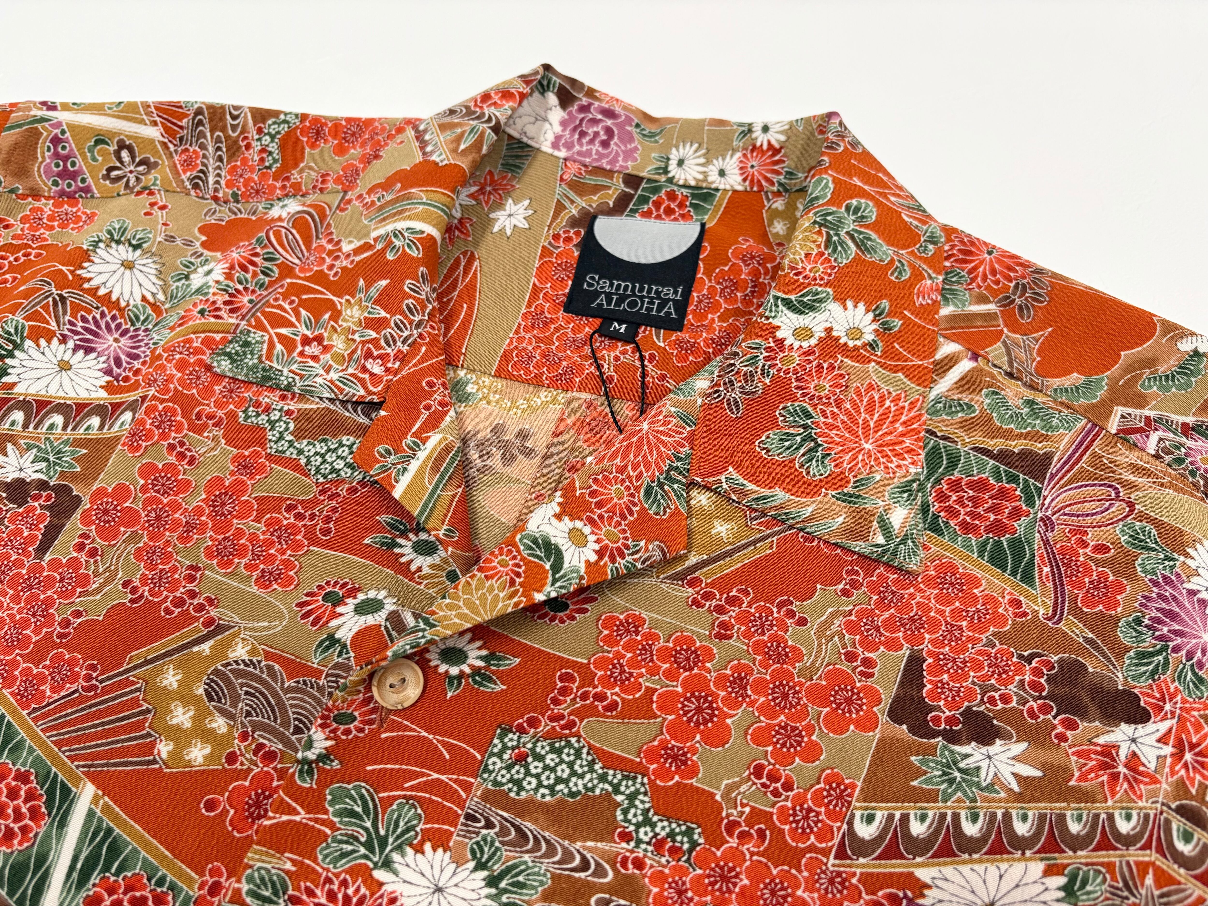 ヴィンテージの着物生地を使ってお仕立てした一点もののサムライアロハ。