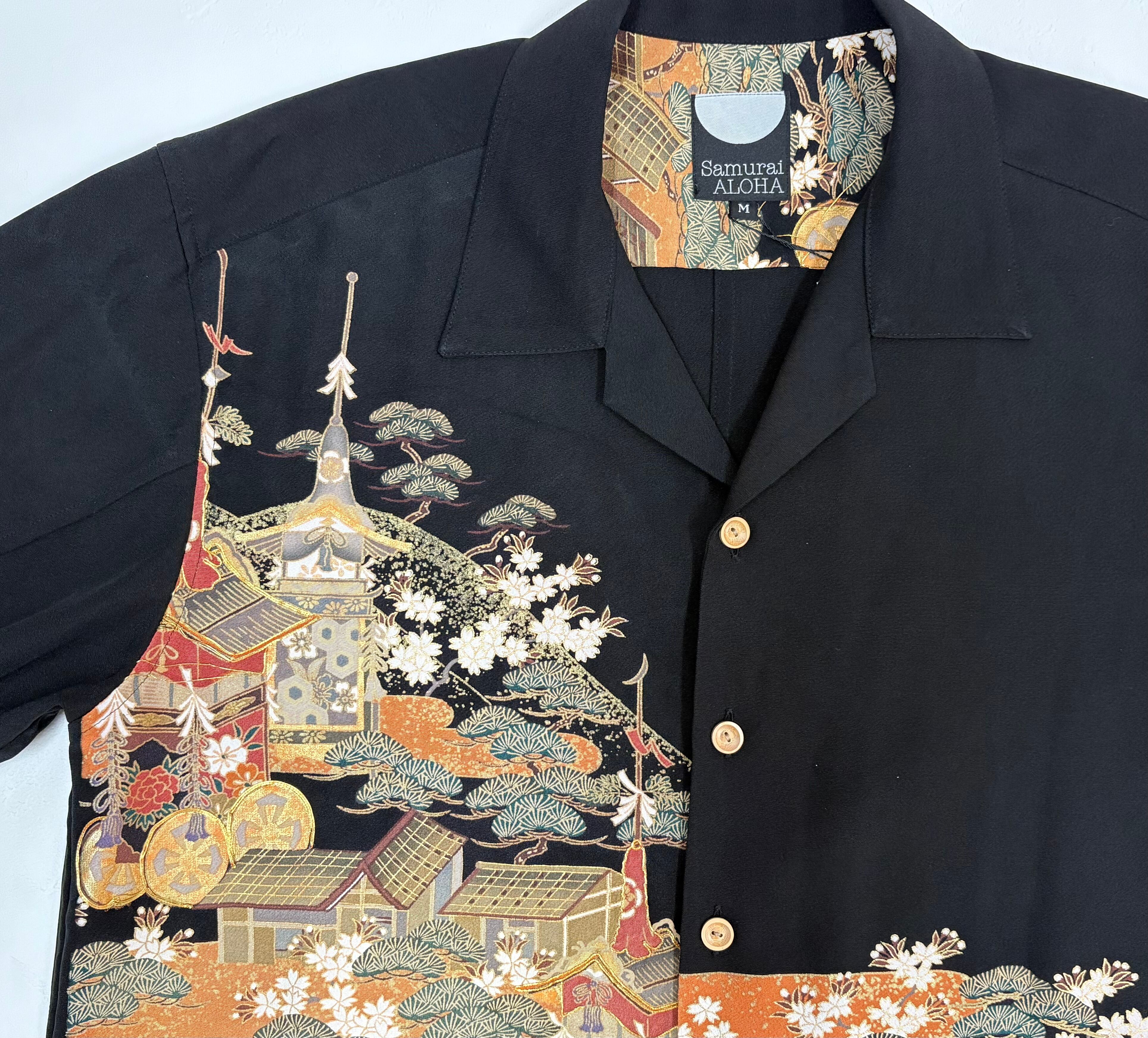 ヴィンテージの着物生地を使ってお仕立てした一点もののサムライアロハ。