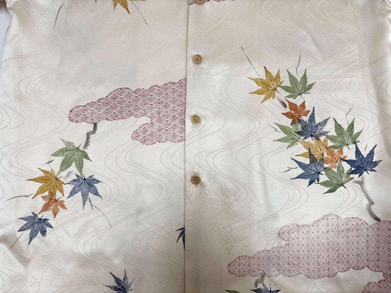 ヴィンテージの着物生地を使ってお仕立てした一点もののアロハシャツ。