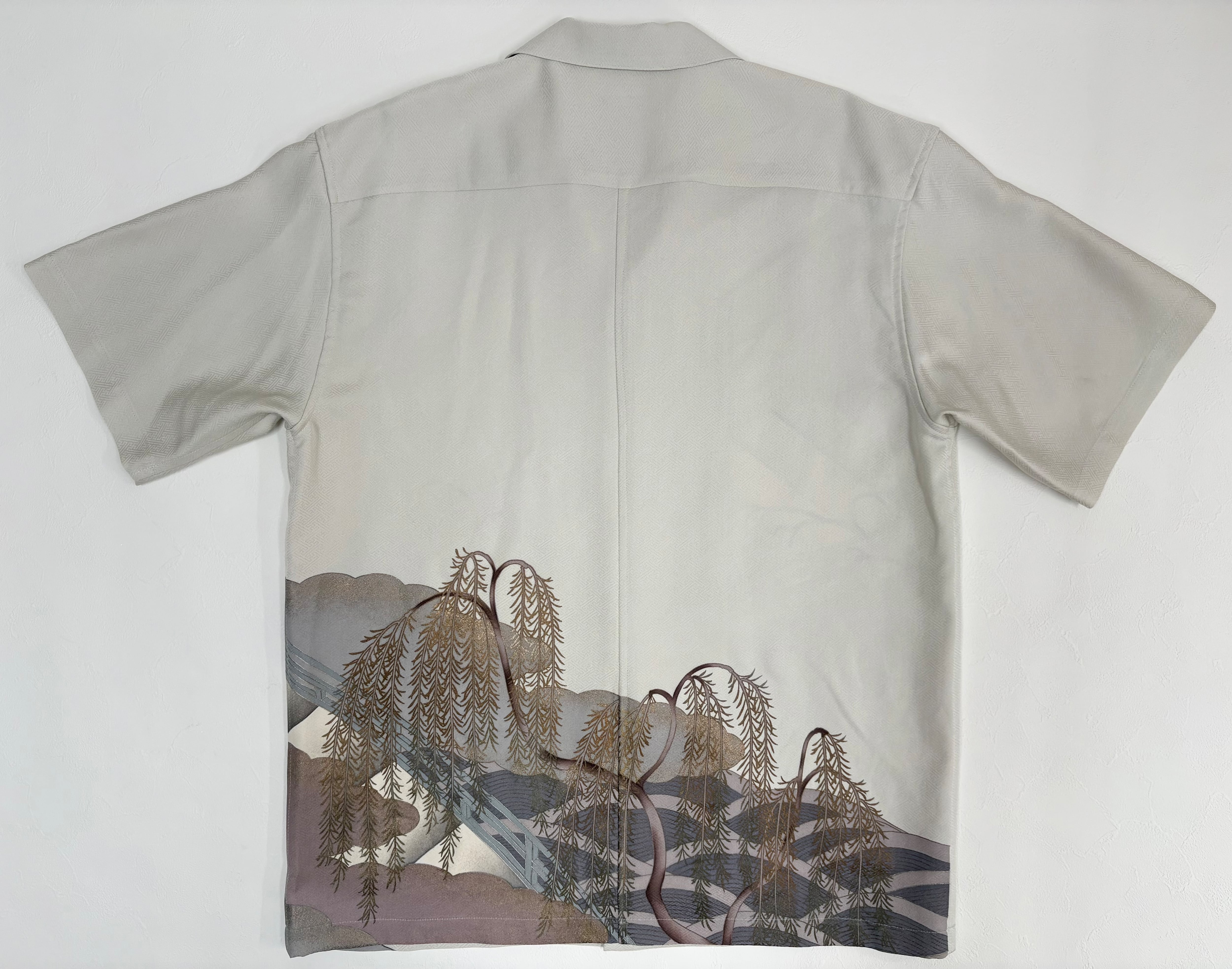 ヴィンテージの着物生地を使ってお仕立てした一点もののアロハシャツ。