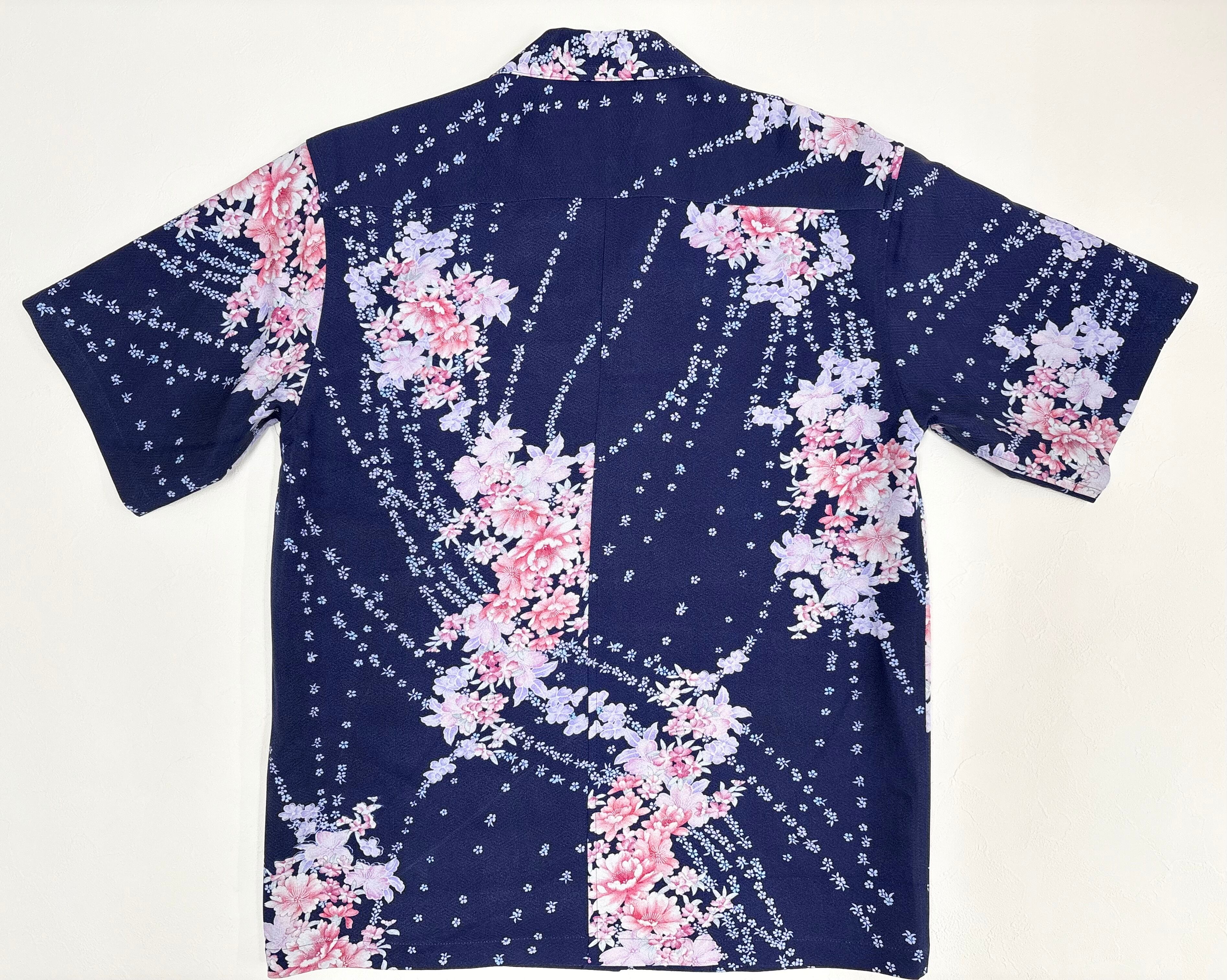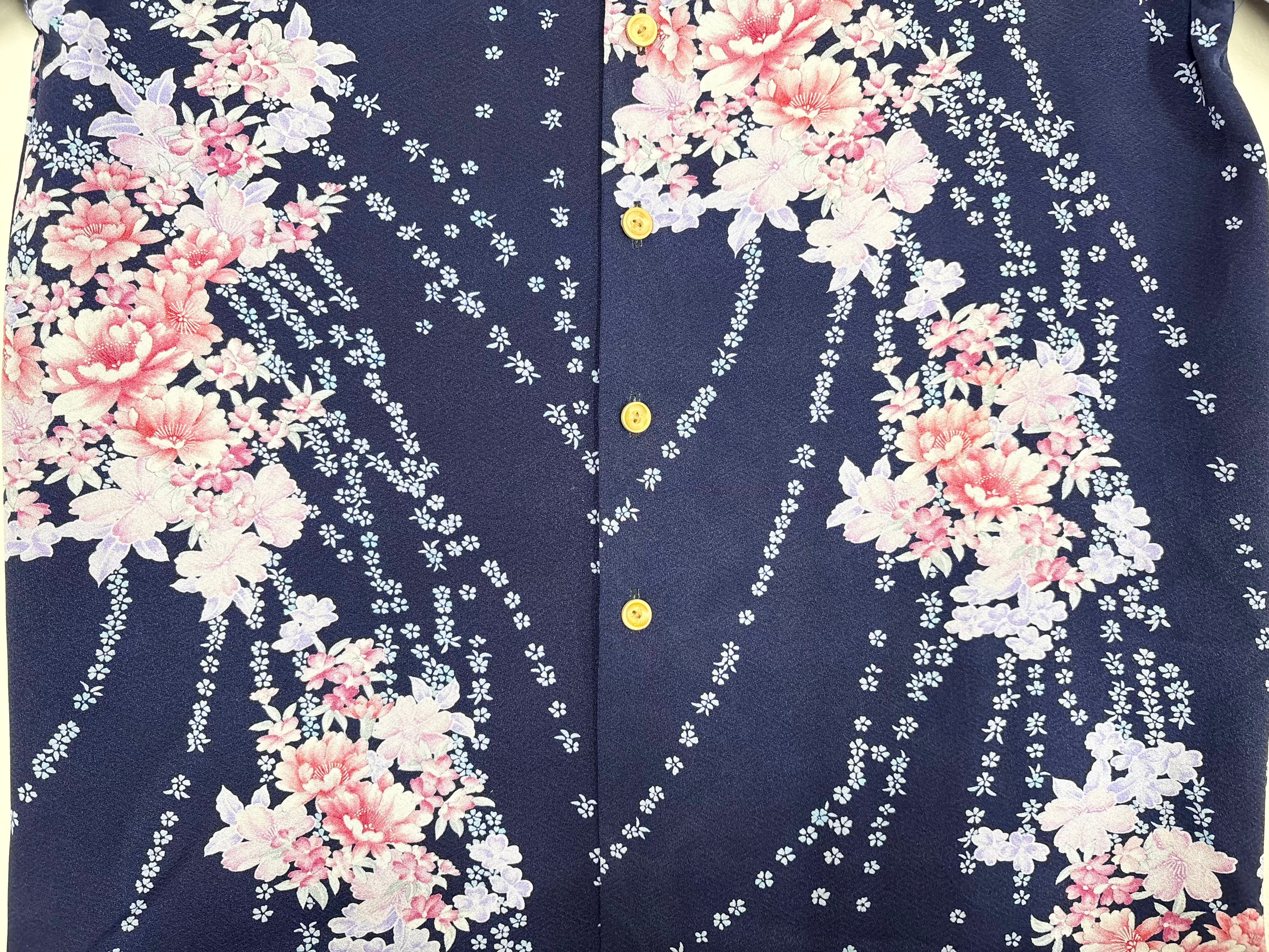 ヴィンテージの着物生地を使ってお仕立てした一点もののアロハシャツ。