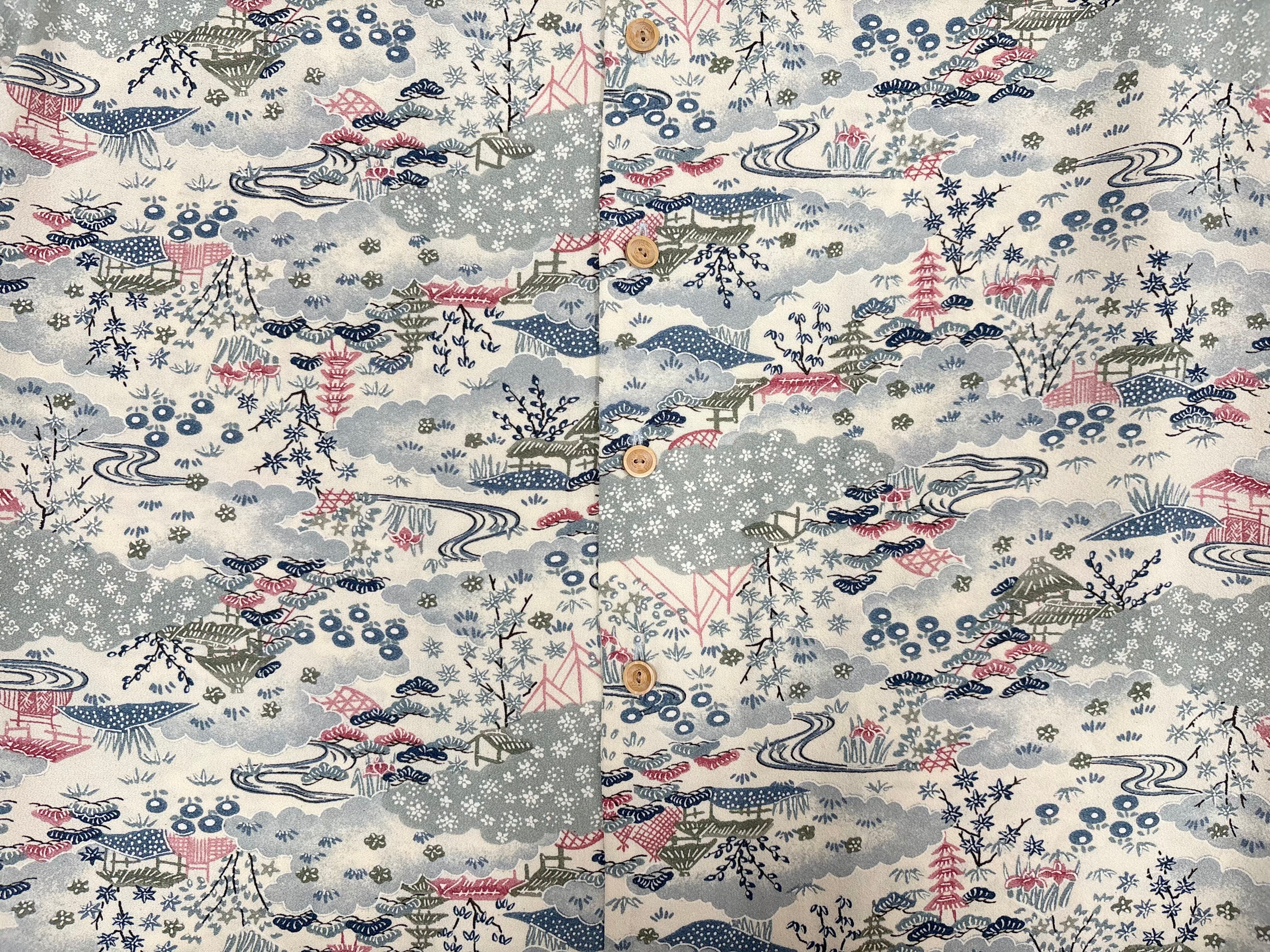 ヴィンテージの着物生地を使ってお仕立てした一点もののアロハシャツ。