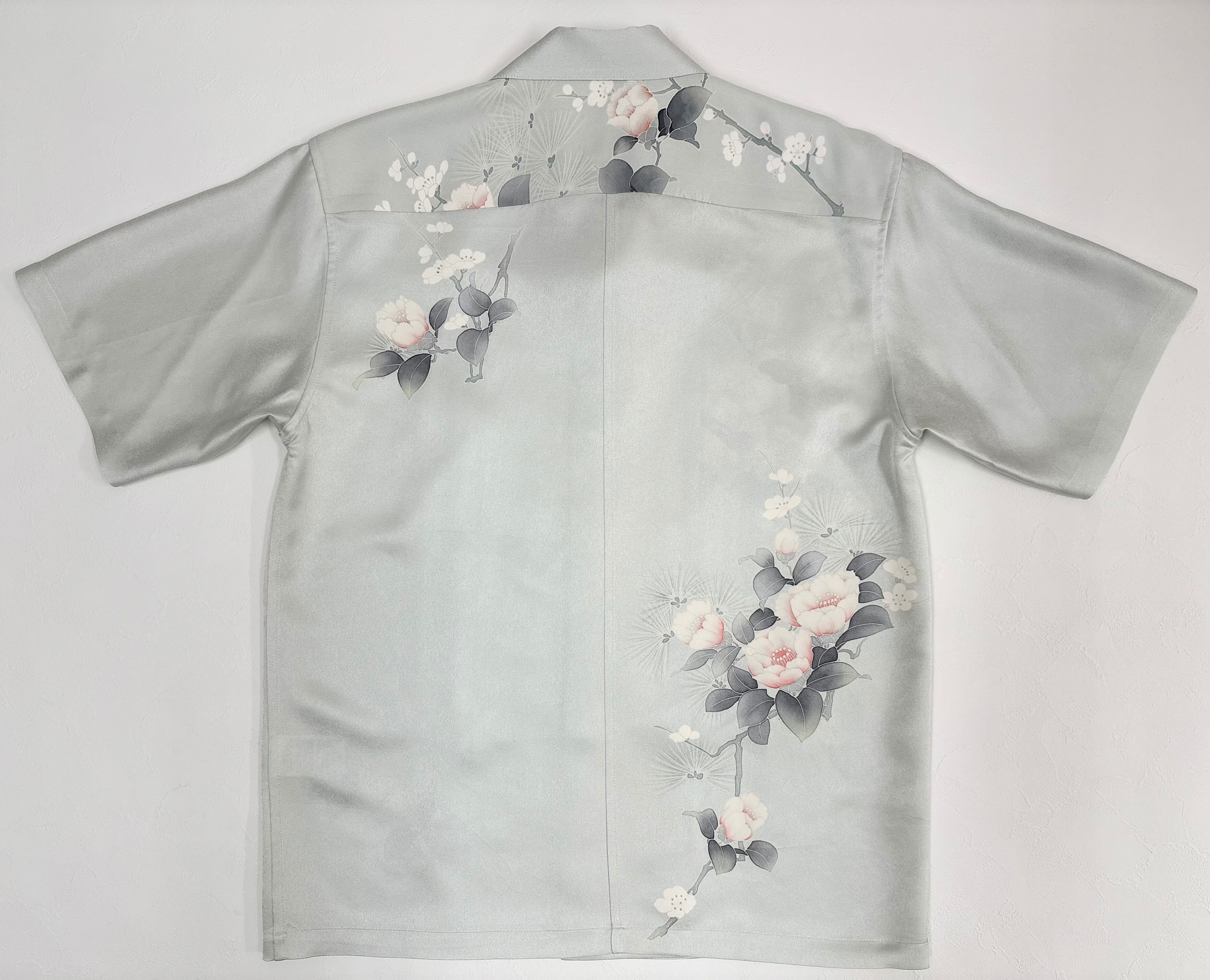 ヴィンテージの着物生地を使ってお仕立てした一点もののアロハシャツ。