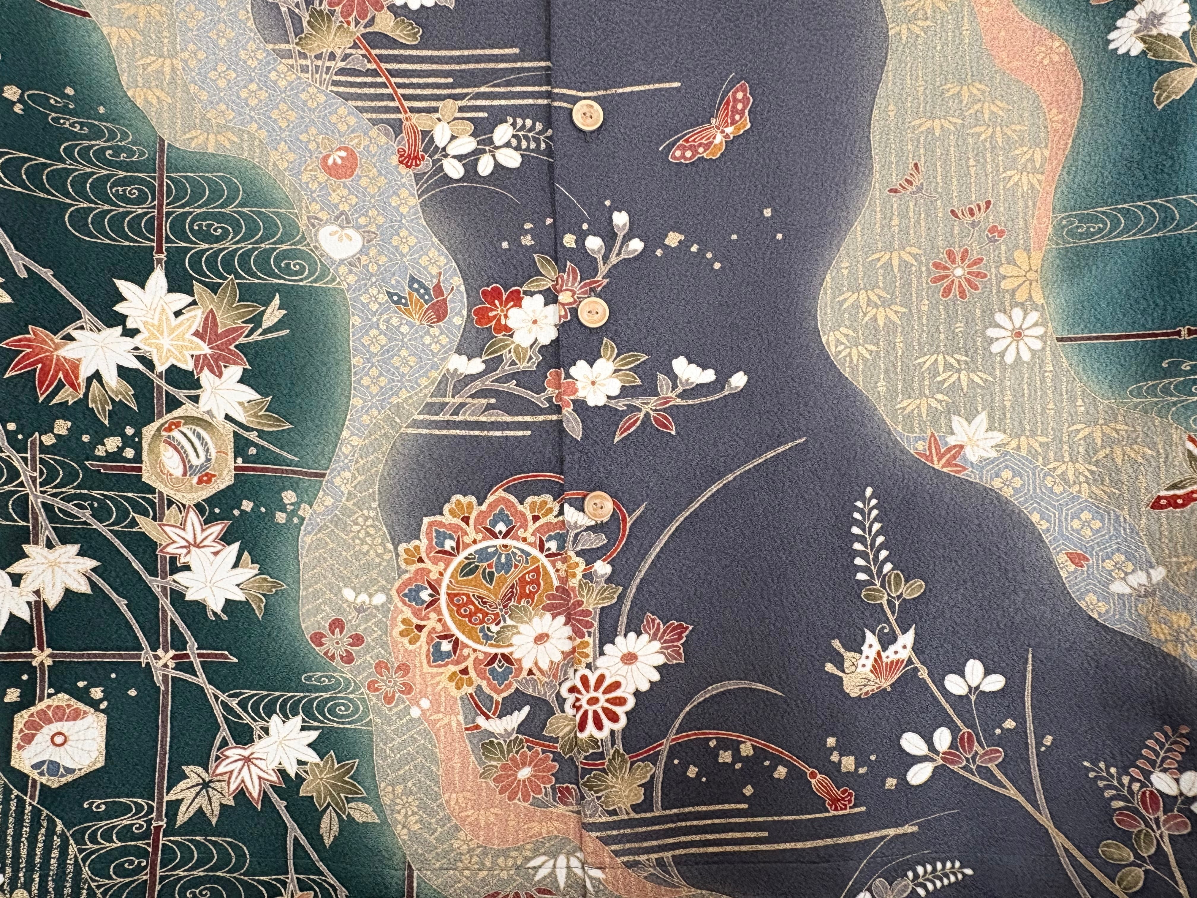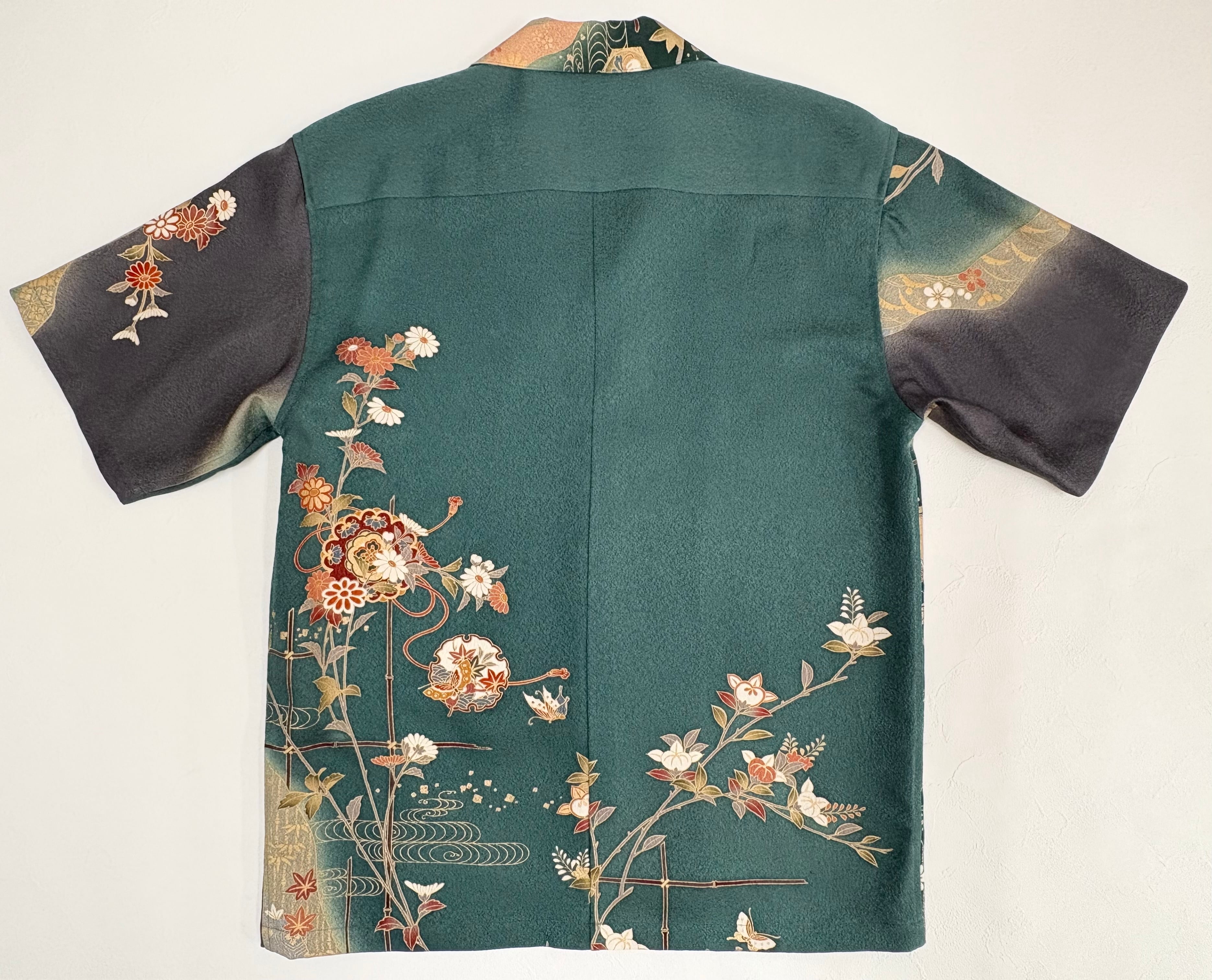 ヴィンテージの着物生地を使ってお仕立てした一点もののアロハシャツ。