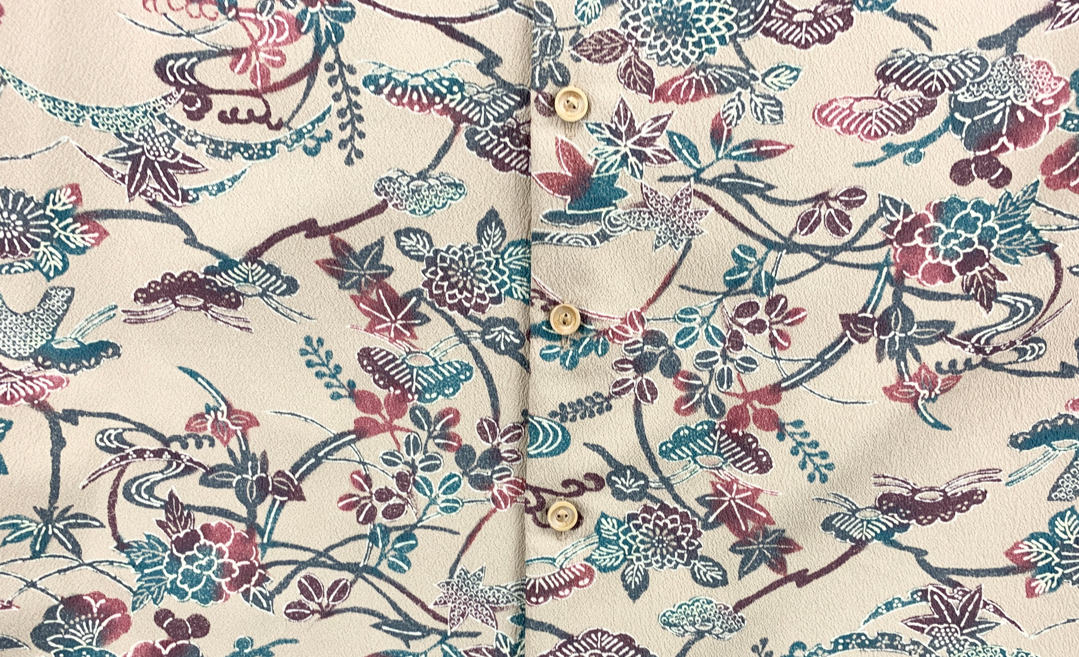 ヴィンテージの着物生地を使ってお仕立てした一点もののアロハシャツ。