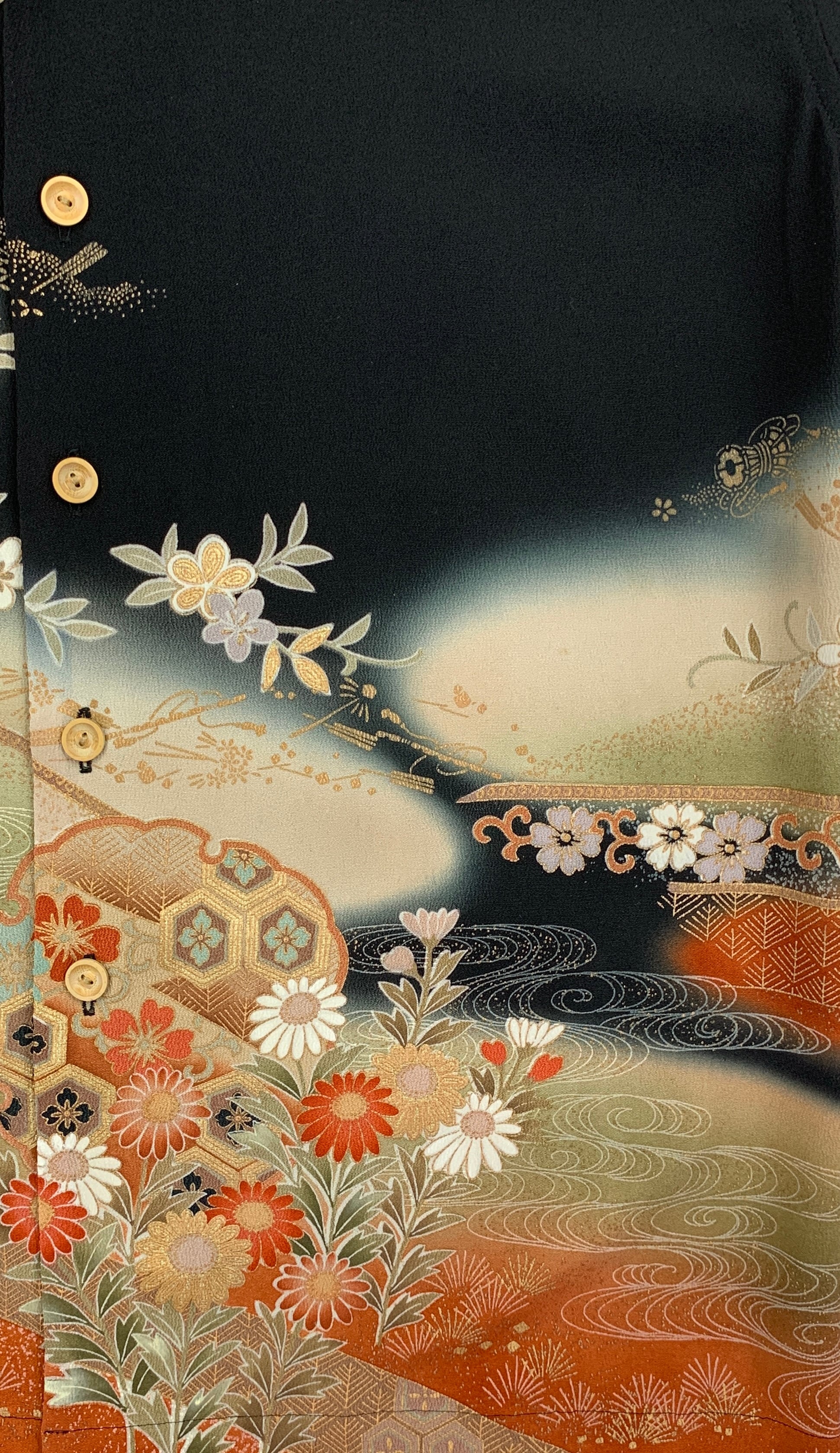 ヴィンテージの着物生地を使ってお仕立てした一点もののアロハシャツ。