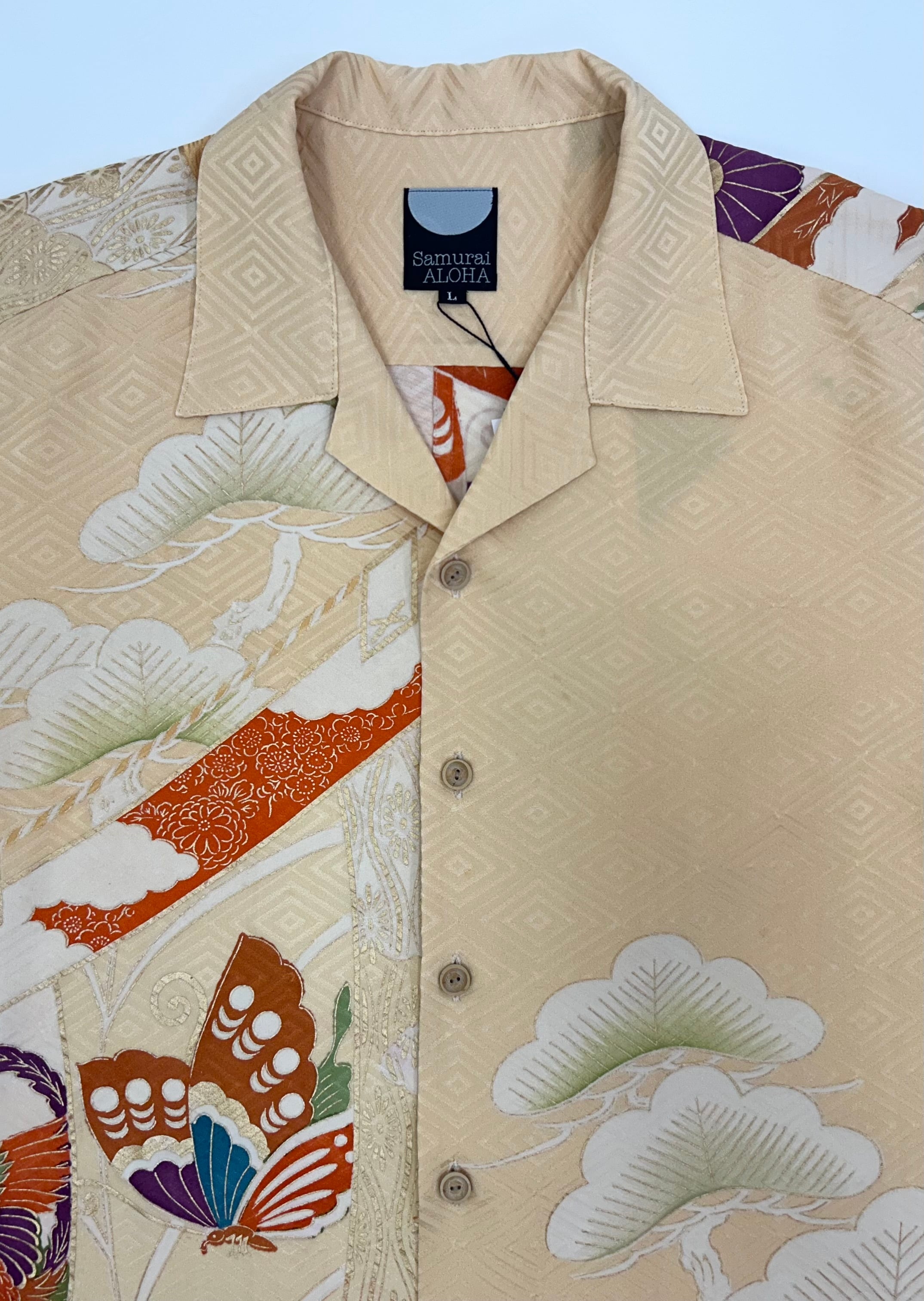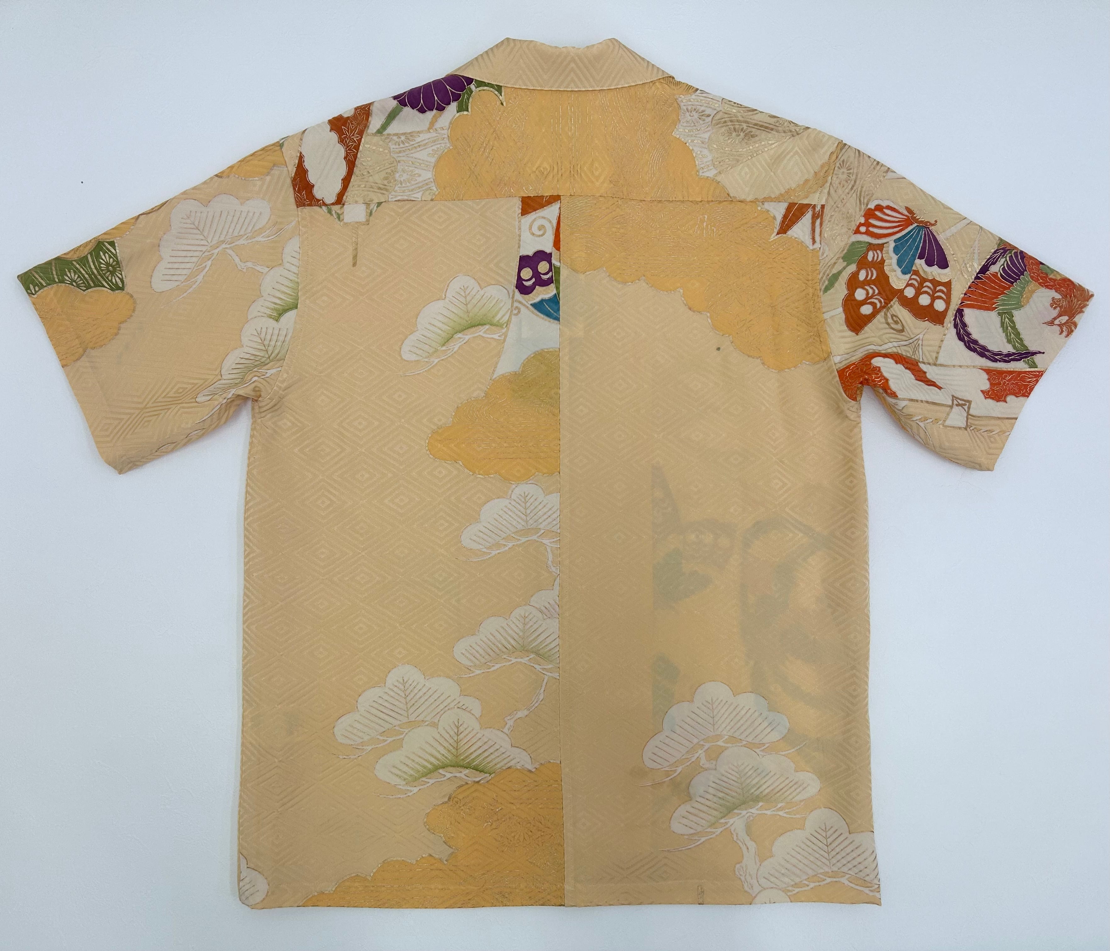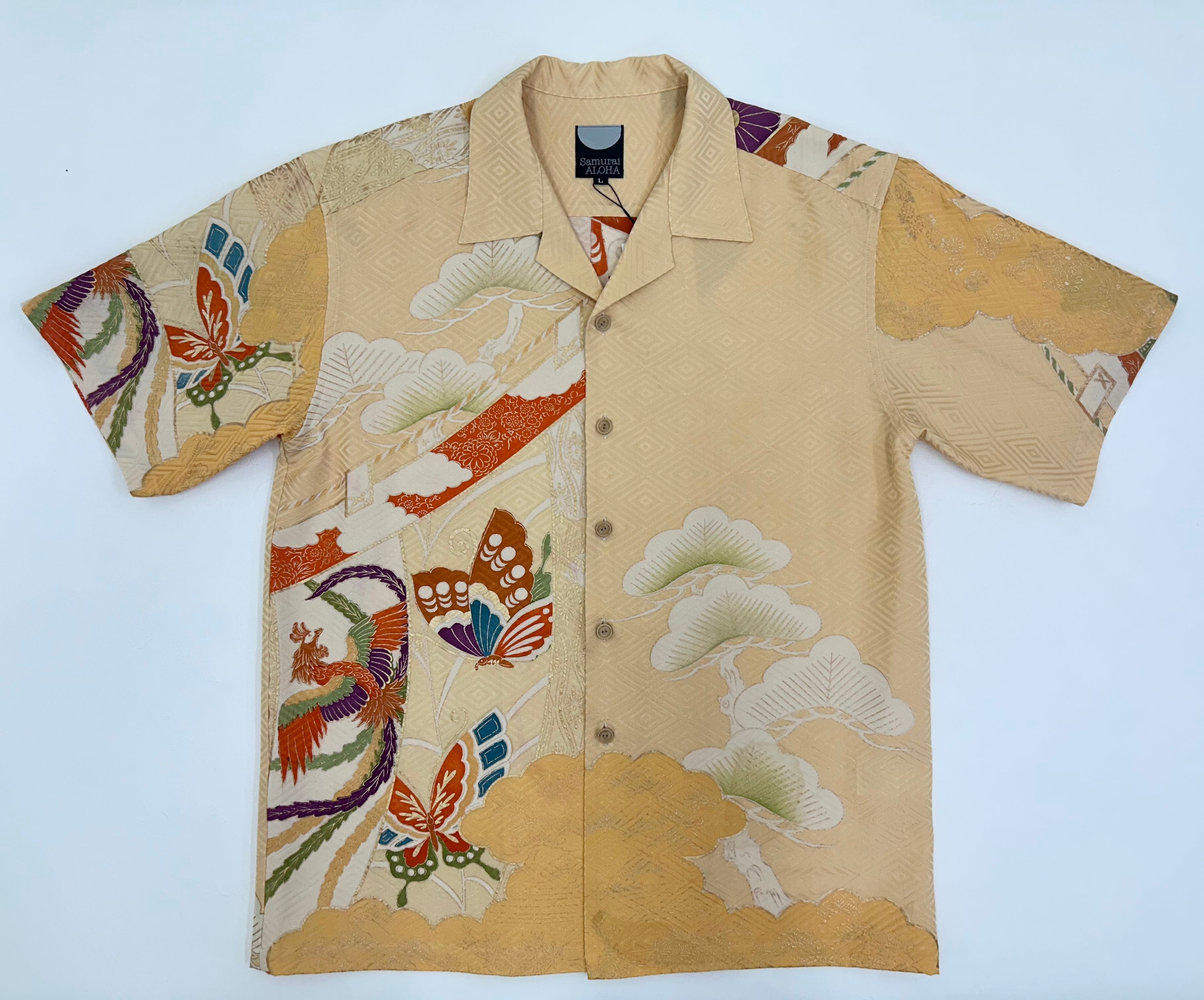 ヴィンテージの着物生地を使ってお仕立てした一点もののアロハシャツ。