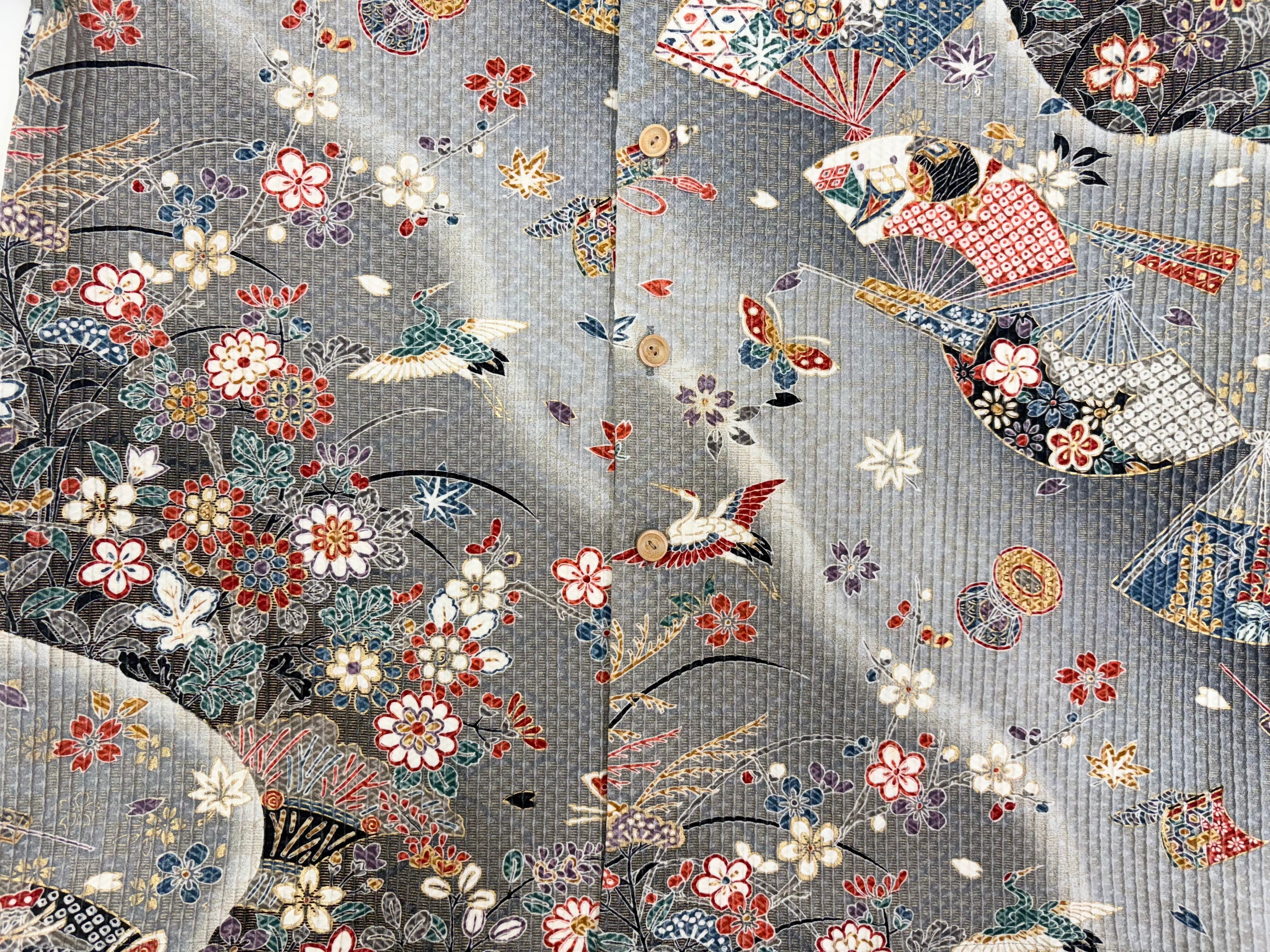 ヴィンテージの着物生地を使ってお仕立てした一点もののアロハシャツ。