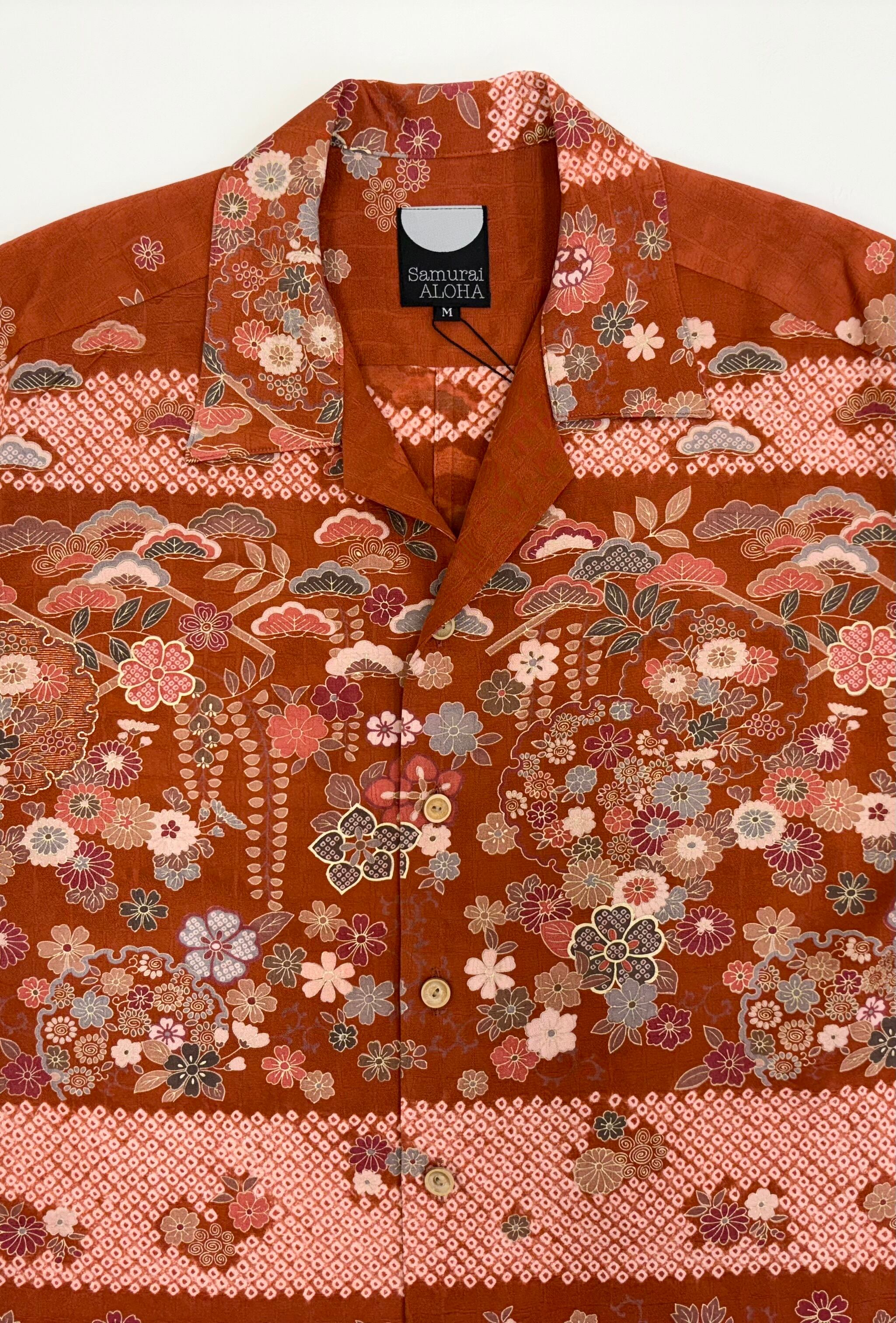 ヴィンテージの着物生地を使ってお仕立てした一点もののアロハシャツ。