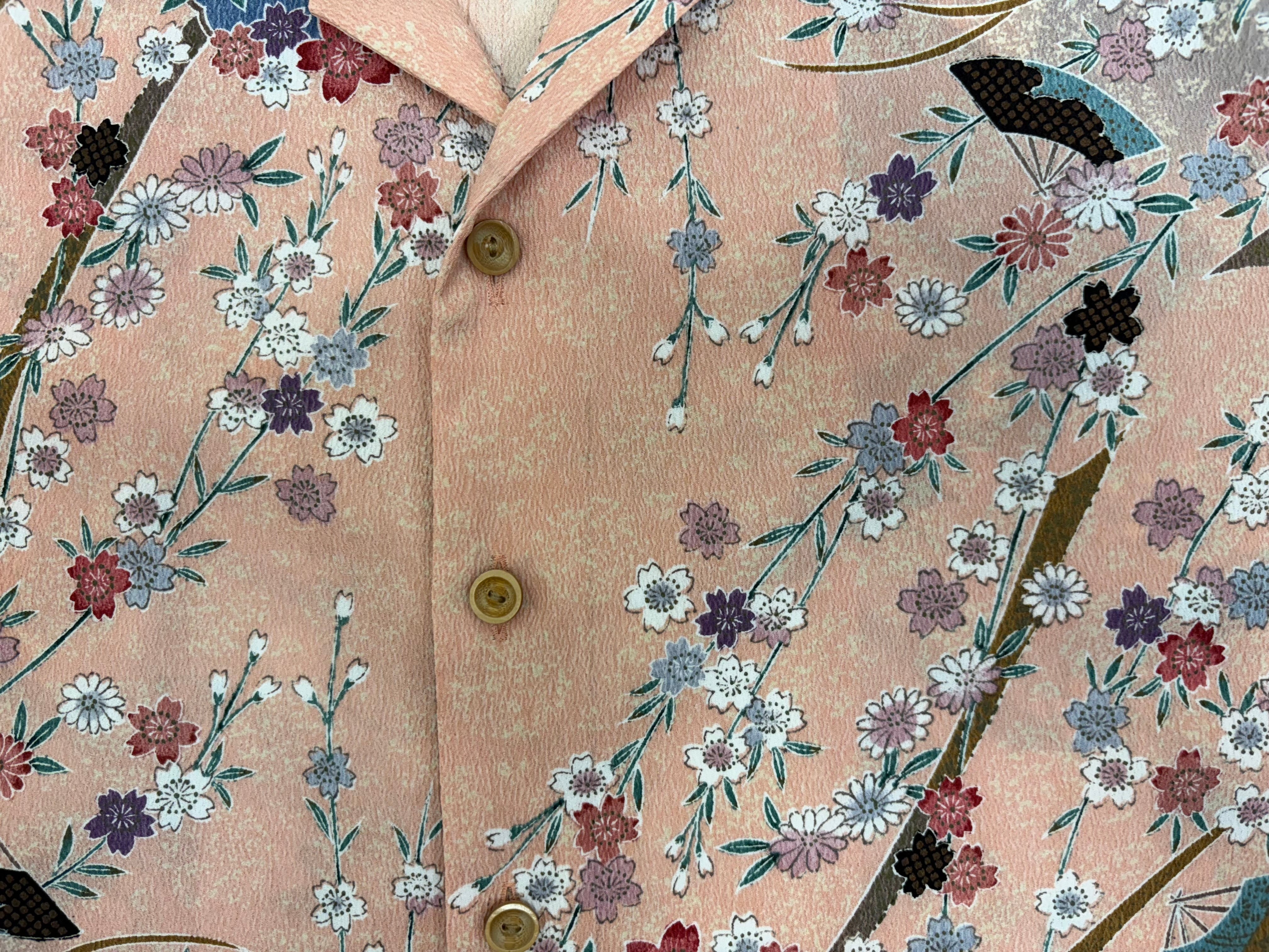 ヴィンテージの着物生地を使ってお仕立てした一点もののアロハシャツ。