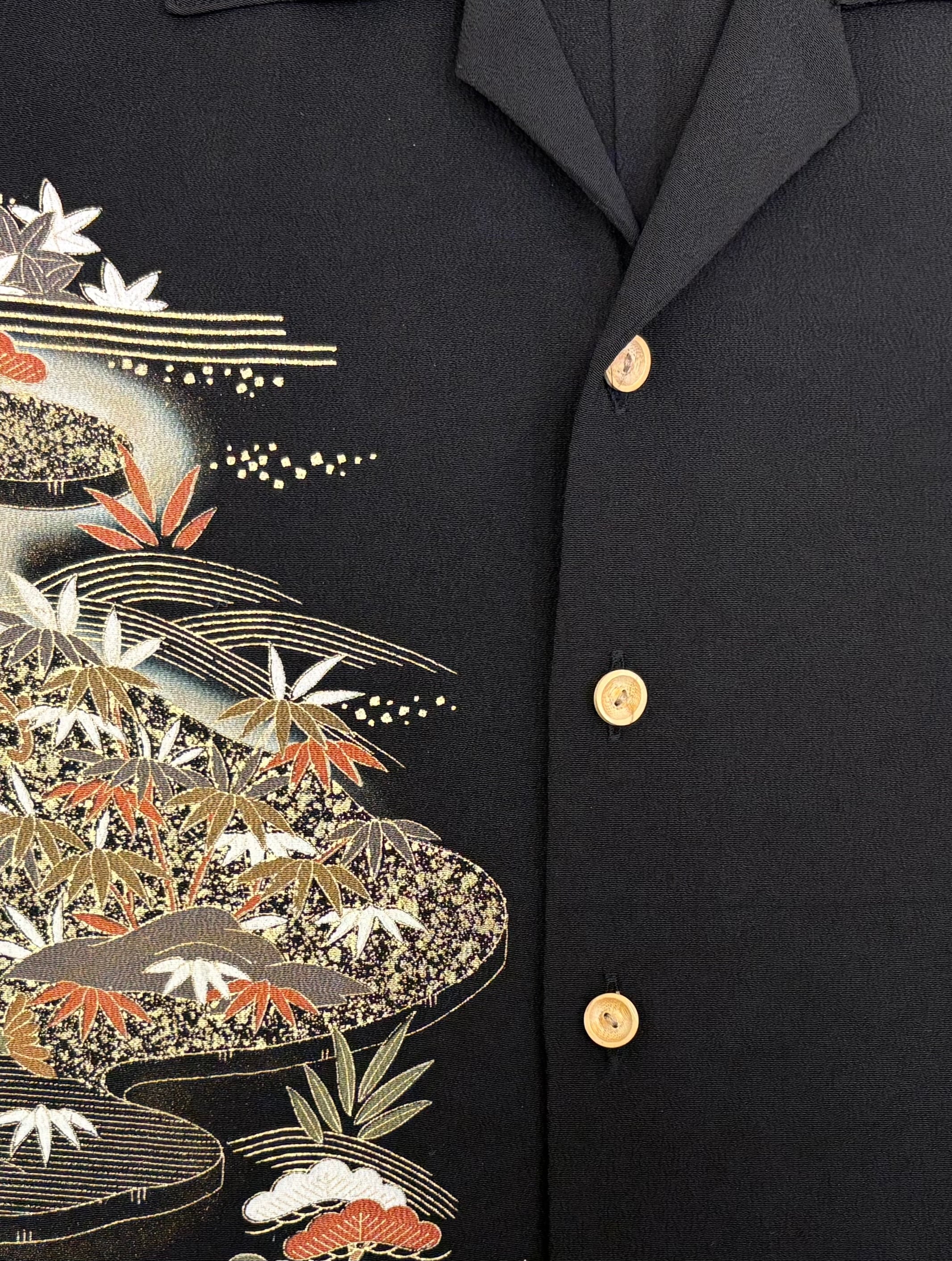 ヴィンテージの着物生地を使ってお仕立てした一点もののアロハシャツ。