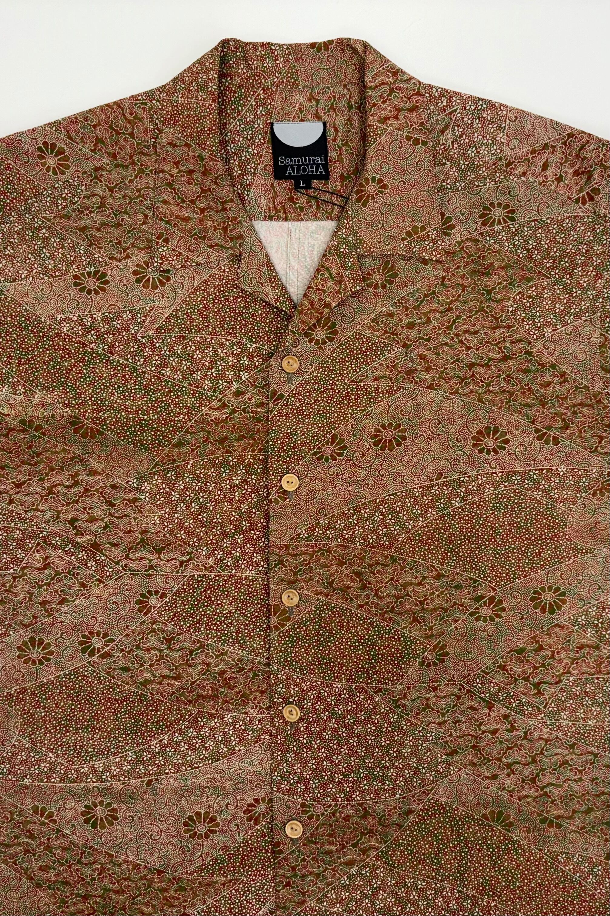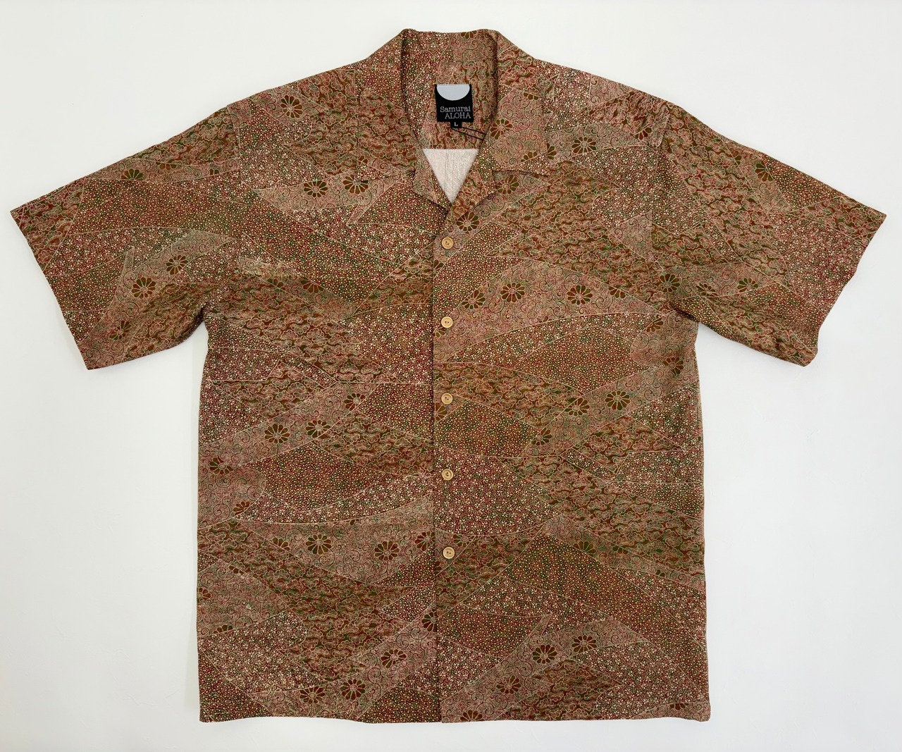 ヴィンテージの着物生地を使ってお仕立てした一点もののアロハシャツ。
