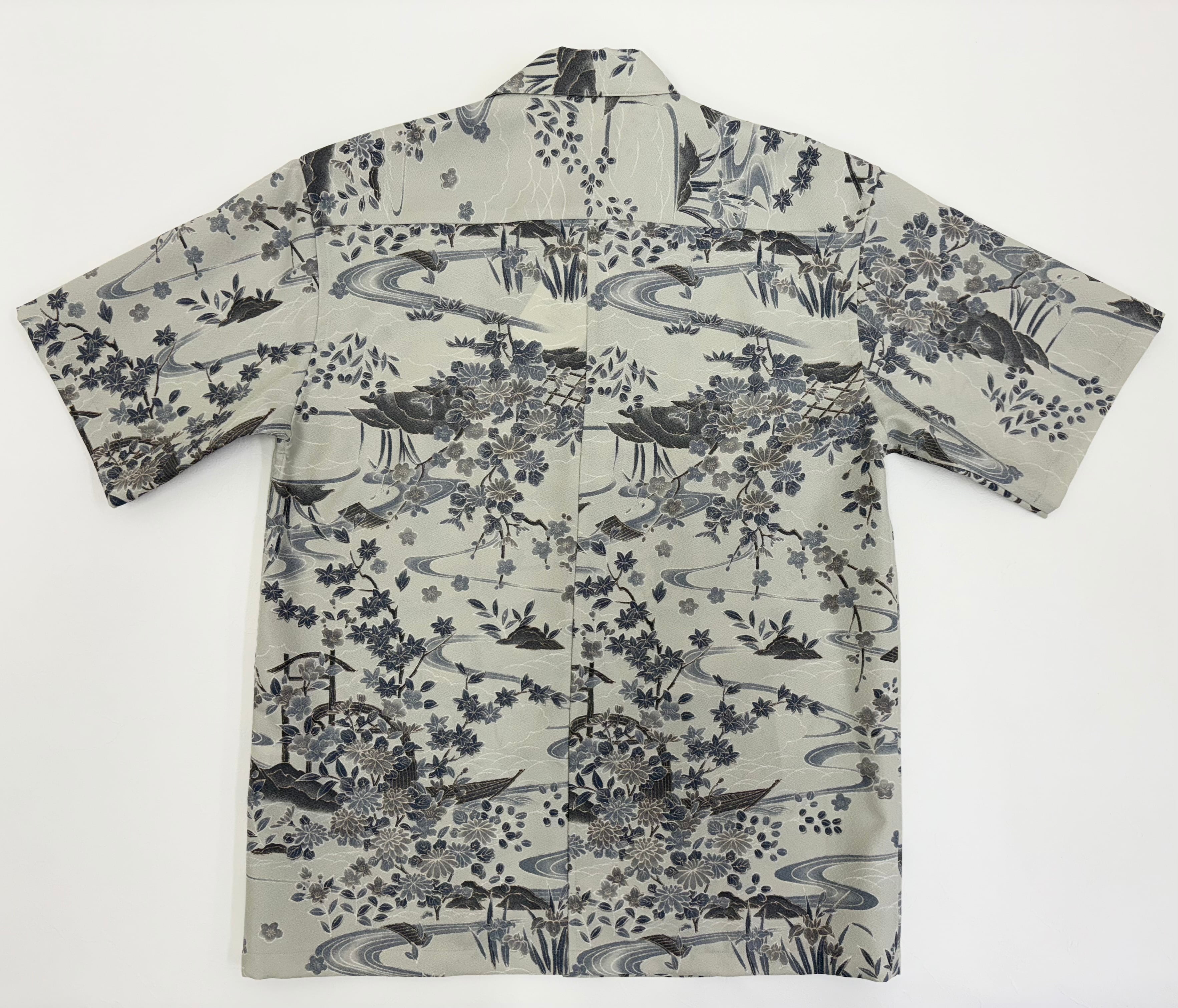 ヴィンテージの着物生地を使ってお仕立てした一点もののアロハシャツ。