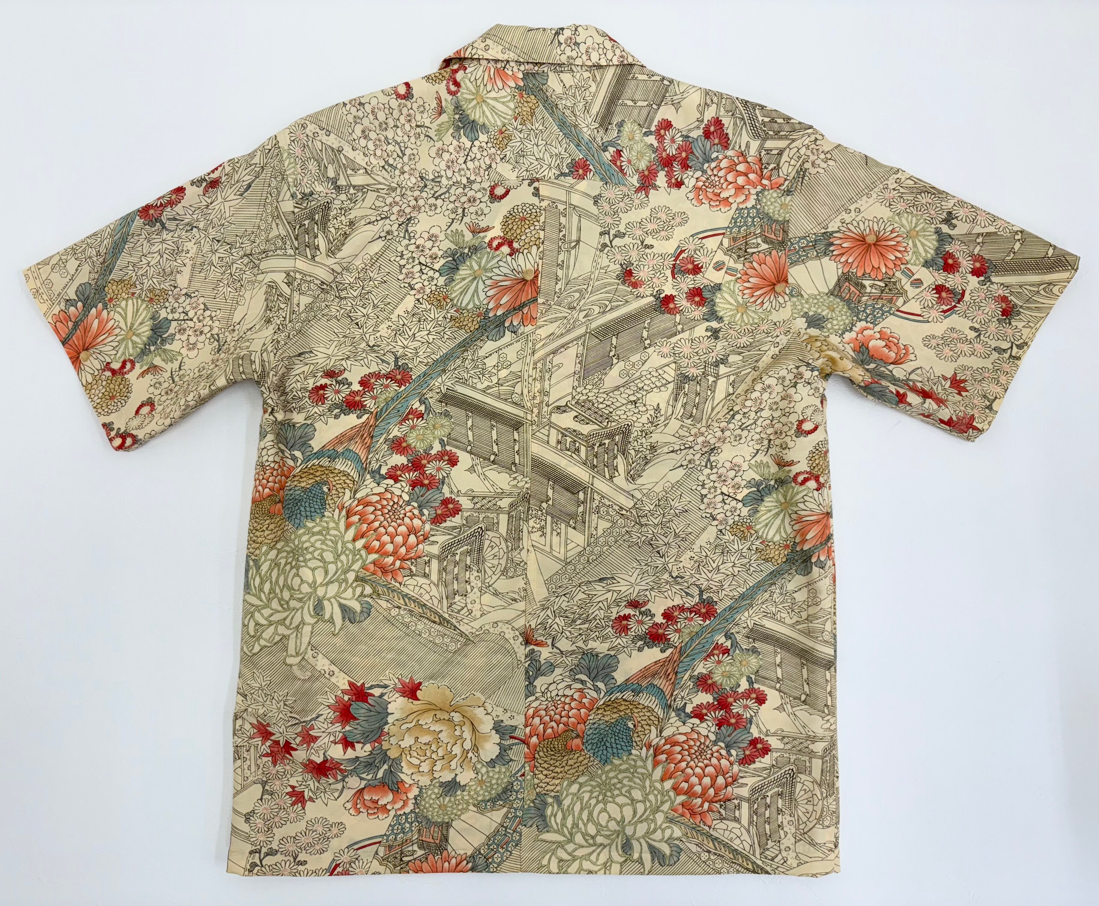 ヴィンテージの着物生地を使ってお仕立てした一点もののアロハシャツ。