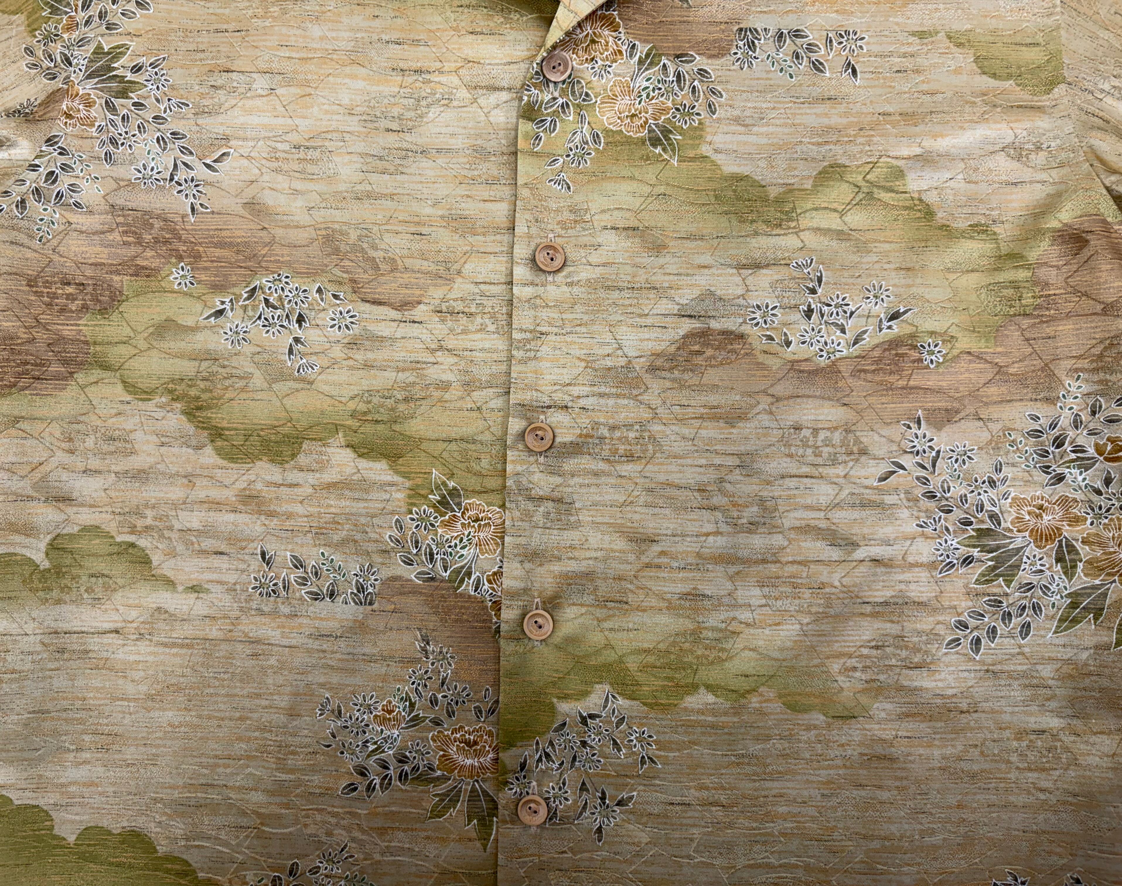 ヴィンテージの着物生地を使ってお仕立てした一点もののアロハシャツ。